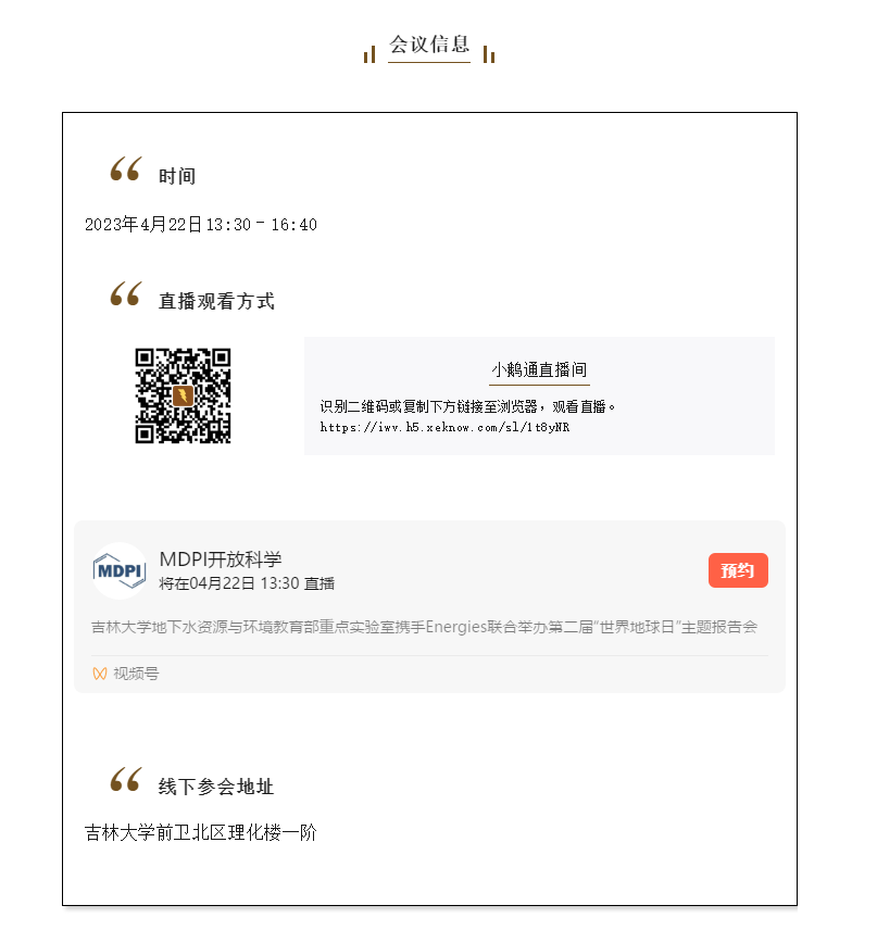 今年是304永利集团地学学科创建的第70周年,为庆祝此学科的长足发展并响应“世界地球日”的号召,304永利集团地下水资源与环境教育部重点实验室携手 Energies 期刊联合举办“世界地球日”主题报告会,就应对全球气候变化——“地质碳中和与地下新能源”相关领域的最新研究成果与应用进展为大家带来精彩的学术报告。本次研讨会开播时间为2023年4月22日13:30–16:40,欢迎大家积极参与!