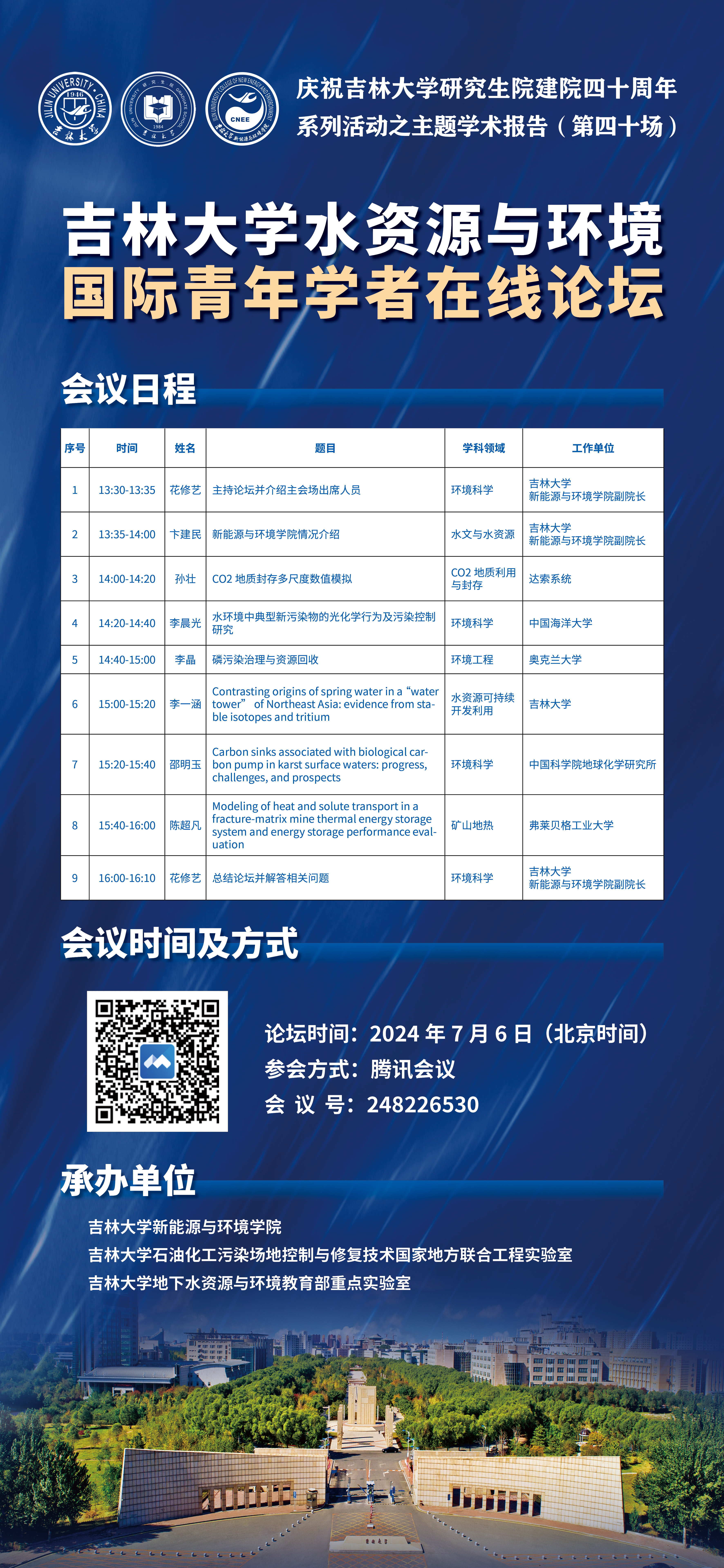 庆祝304永利集团研究生院建院四十周年系列活动之主题学术报告(第四十场)2024年304永利集团水资源与环境国际青年学者在线论坛