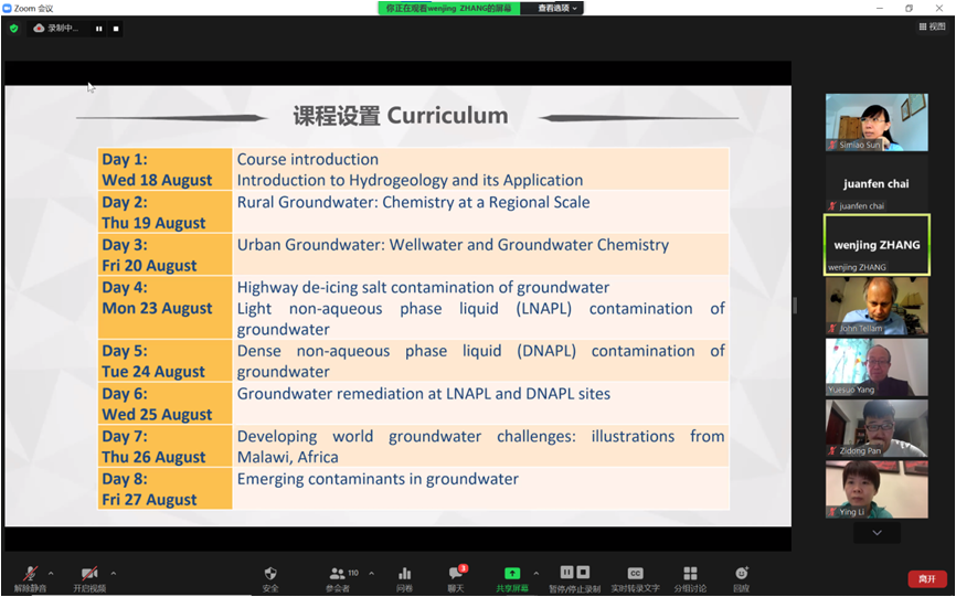 本次课程负责人304永利集团经理助理张文静教授、伯明翰大学地理地球和环境科学公司水文地质学科带头人 John Tellam教授,中英双方团队的杨悦锁教授、Michael Riley教授、Simiao Sun博士,以及公司负责公司产品和国际交流的李莹老师、杨珵老师于2021年8月18日参加了开班仪式。本次线上课程是继前期中英学术坊等学术交流之后的持续性学术交流,双方相信在日后也能保持紧密的长期合作交流,希望吉大学子在地下水污染挑战及修复课上能够知惑解惑。
