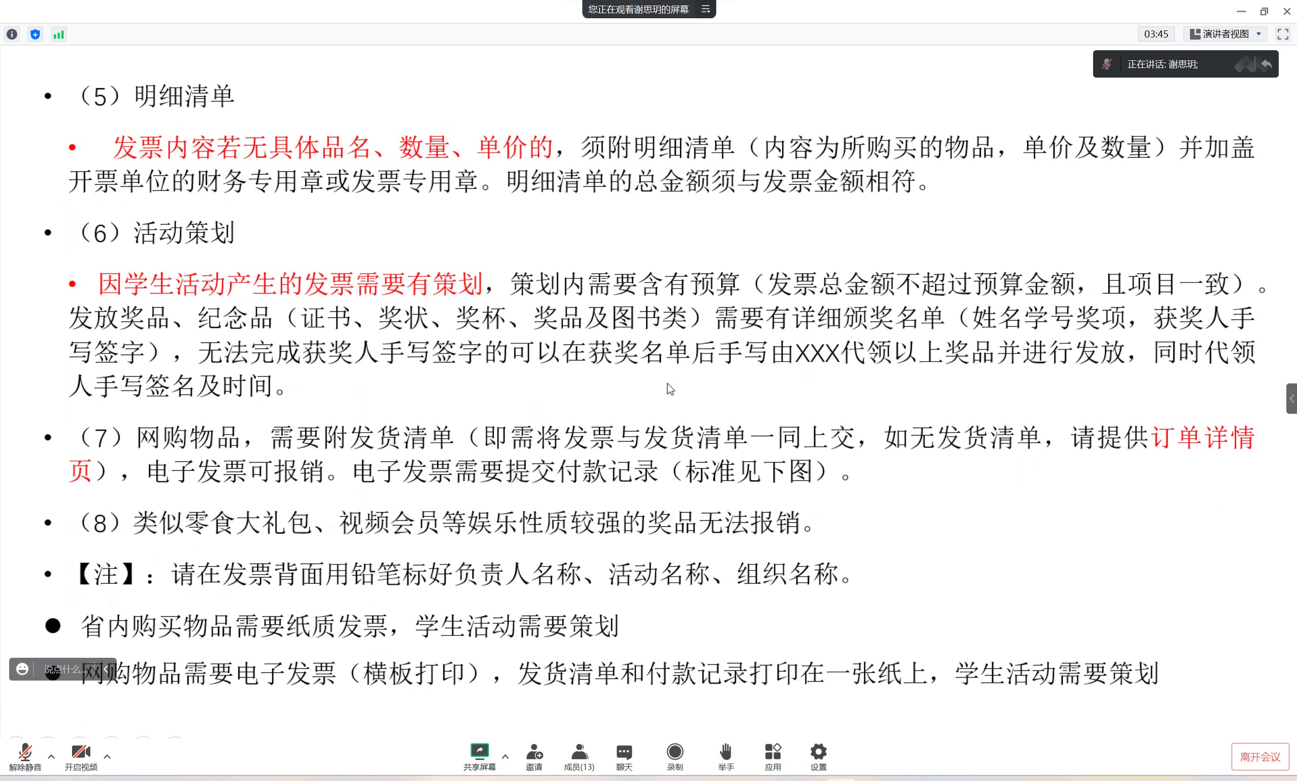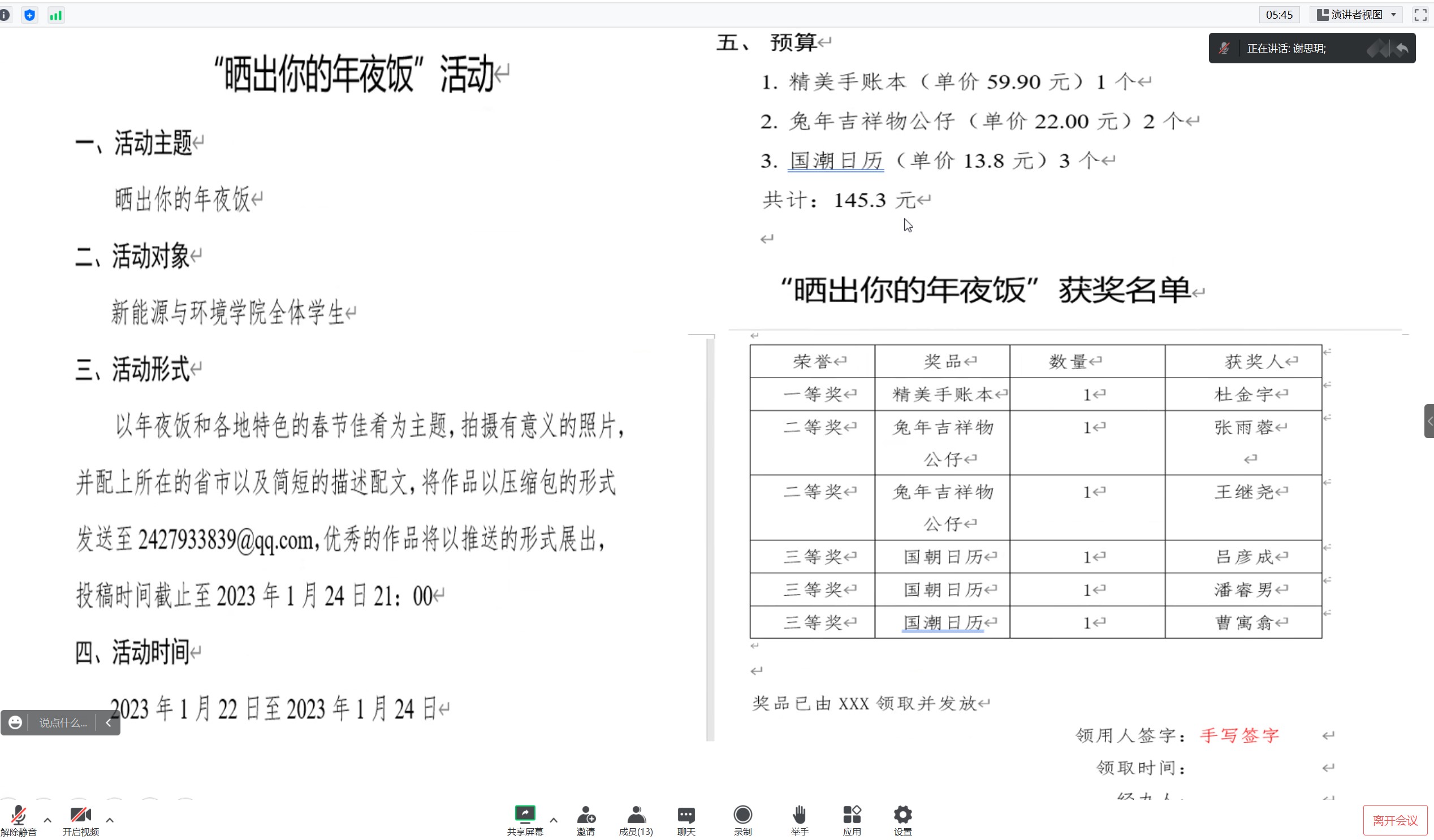 会上,谢思玥详细讲解了策划撰写的主要内容,强调了员工活动经费审批使用的流程,与会同学共同明确干事的职责划分。倡导学团组织干事要及时做好沟通交流,协商互相帮助完成工作,活动策划人或负责人要对活动执行负责到底。