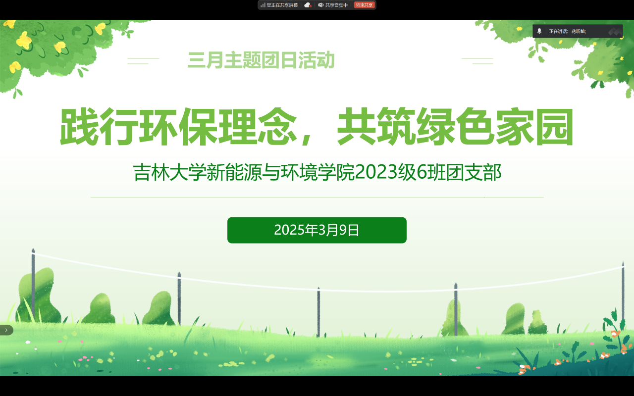 252326团支部向大家展示了环保宣传片《带着地球去远方》,以及生动的画面和引人深思的内容,深入浅出地讲解了垃圾分类的重要性、减少塑料使用的方法以及节能减排的具体措施。