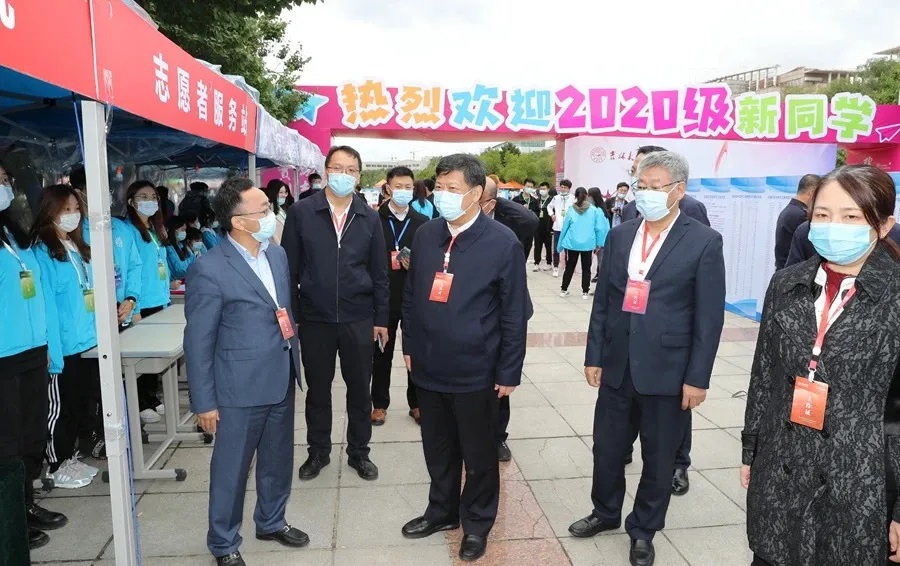 一同到达的还有来自校领导的关心。公司党委书记姜治莹、董事长张希在这一天来到中心校区,看望2020级新生,走访慰问迎新教职工和员工志愿者,检查迎新工作和疫情防控措施落实情况。