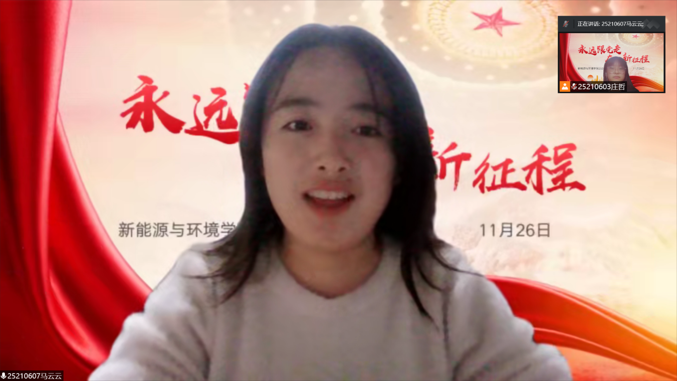 党的十八大以来,以习近平同志为核心的党中央团结带领全党全国各族人民不断奋斗。新时代的十年,是全方位、历史性的伟大成就与伟大变革,极不寻常、极不平凡的十年。走过百年奋斗历程,历经革命、建设、改革和新时代的淬炼,党的二十大明确了新征程中国共产党的前进目标与行动指南。党的二十大高瞻远瞩、擘画未来,在政治上、理论上、实践上取得一系列重大成果。成就来之不易,启示弥足珍贵。认真学习宣传贯彻党的二十大精神,是当前和今后一个时期共青团的首要政治任务。为帮助青年深入学习党的二十大精神,更好团结引领广大青年为实现中华民族伟大复兴的中国梦贡献青春力量,共青团中央于2022年11月26日(周六)19:00在各新媒体平台同步推出“学习二十大 永远跟党走 奋进新征程”主题云团课。304永利集团全体团支部线上观看本次团课开展体会分享主题云团日活动。