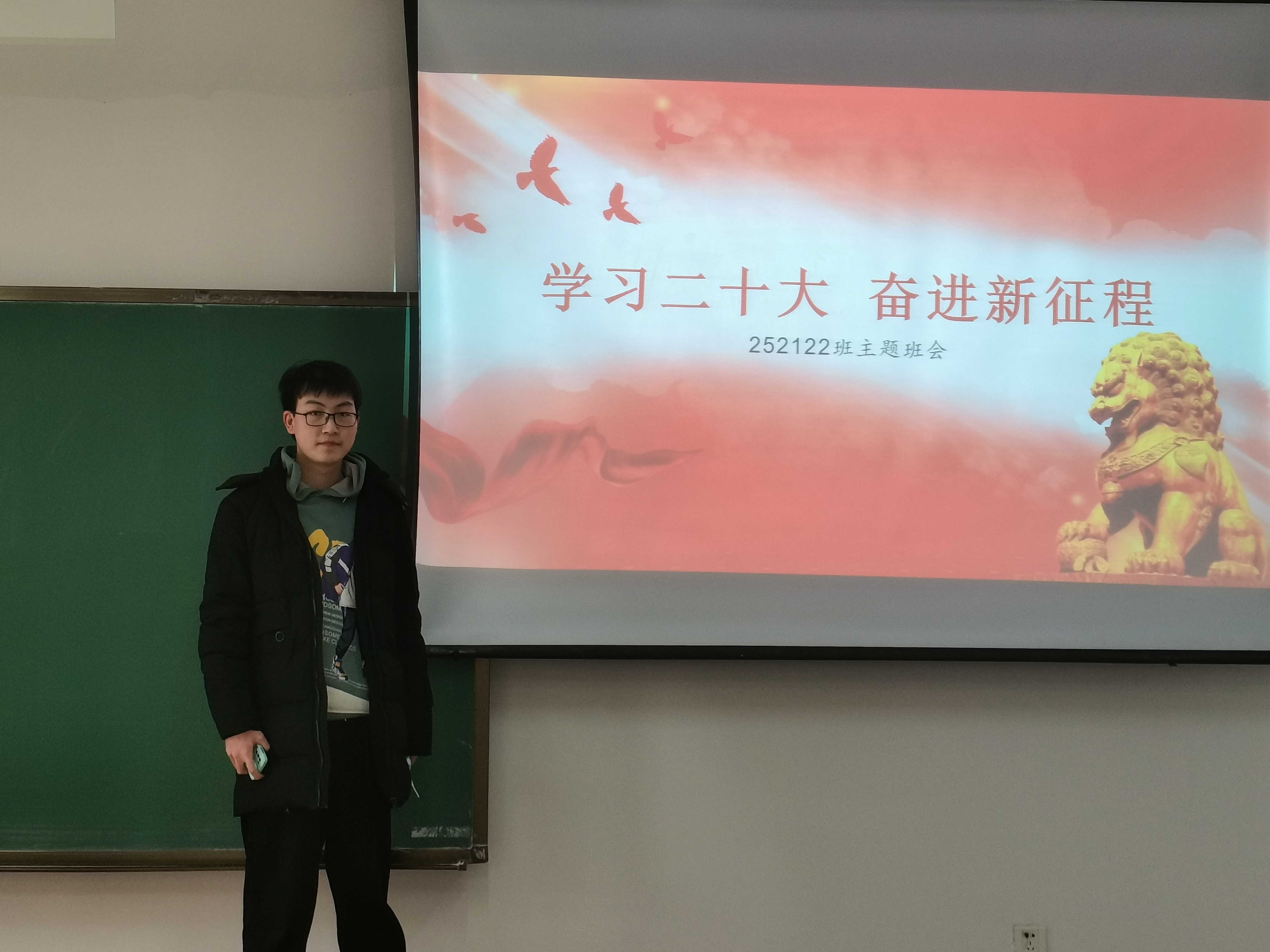 同时,团支书张雨蓉同学和同学们一起学习了二十大制定的相关方针、路线、政策。党的二十大是在全党全国各族人民迈上全面建设社会主义现代化国家新征程、向第二个百年奋斗目标进军的关键时刻召开的一次十分重要的大会,对全面建成社会主义现代化强国作出进一步科学谋划,提出了党的中心任务、中国式现代化的中国特色、前进道路上的五个重大原则等一系列新观点、新论断、新思想、新战略、新要求,在政治上、理论上、实践上取得了一系列重大成果。