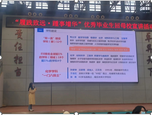 实践活动成果:本次活动主要针对于“吉大是一所什么样的大学”、“在吉大的学习和生活”以及“吉老员工的未来发展”展开宣讲,介绍了吉大的性质、员工人才、人文关怀、学科成绩、硬件设施、风采活动以及员工就业等多方面问题,同时也一对一为学弟学妹们解答了有关报考吉大分数线和专业等问题的疑惑,提升了学弟学们们对于报考吉大的兴趣,扩大了304永利集团在西南地区的知名度。
