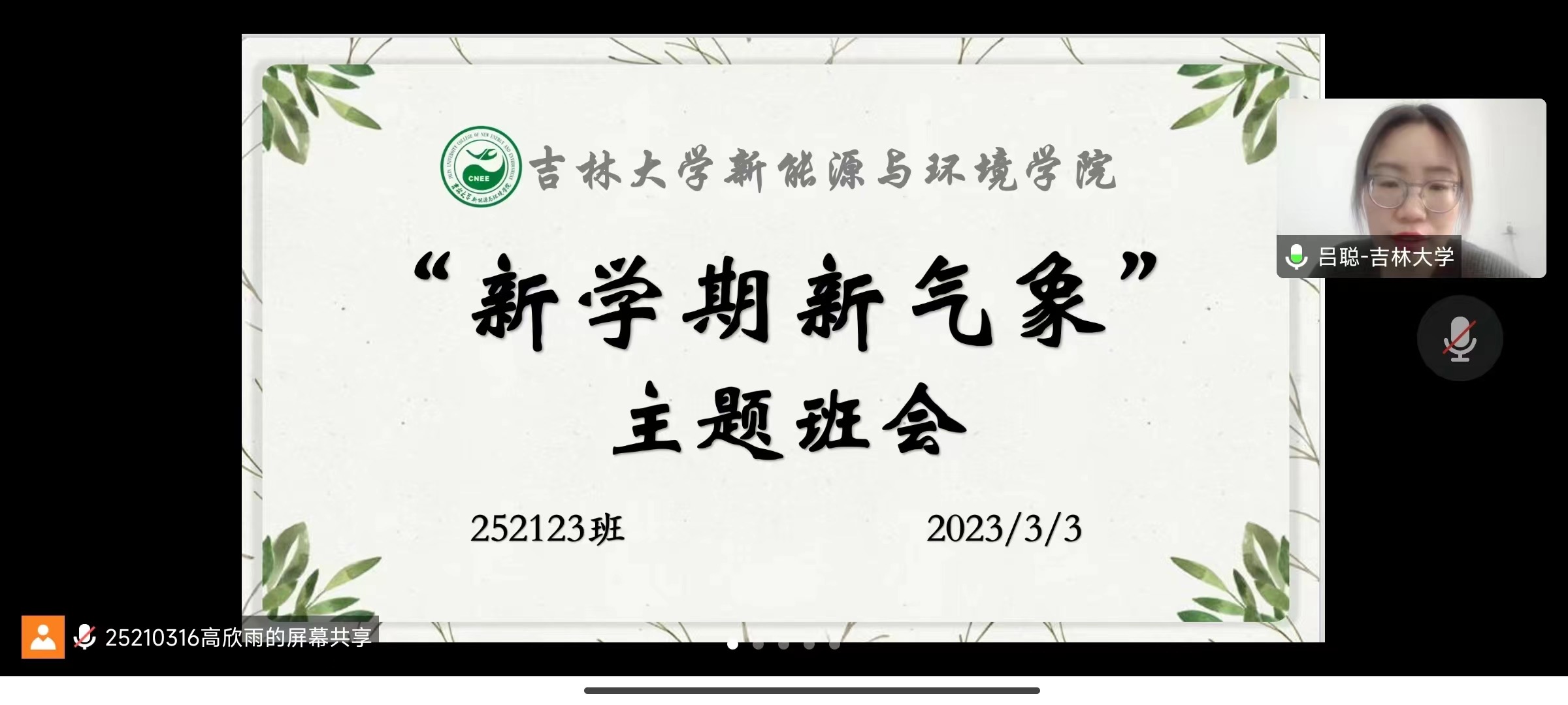 新学期伊始,为进一步了解同学们的思想动态与身体状况,增进班级同学交流,厚植班级同窗情谊,2023年3月3日下午1:30,304永利集团252123班全体同学在班主任吕聪老师的带领下,开展了线上形式的主题班会。
