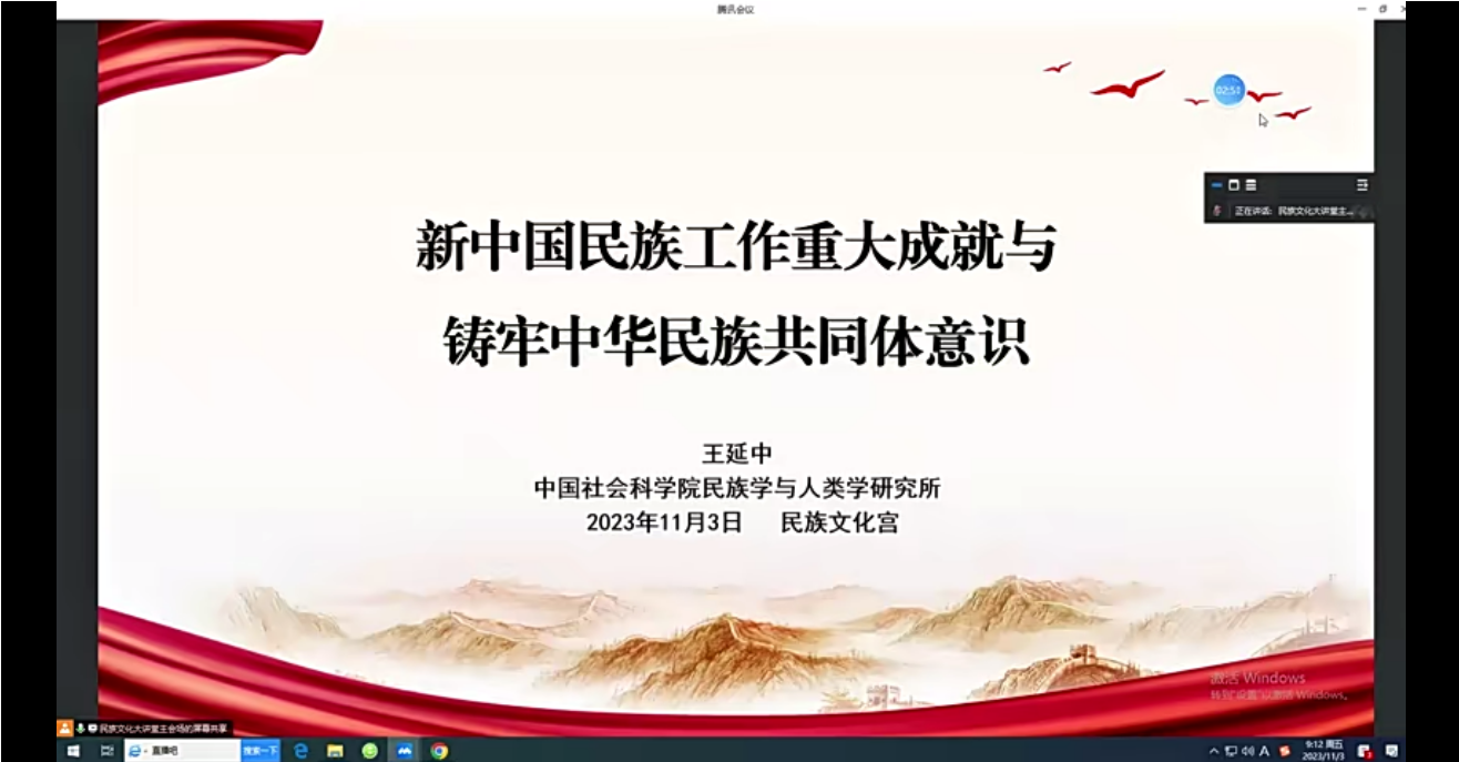 为深入学习贯彻习近平总书记关于铸牢中华民族共同体意识重要讲话精神,推动铸牢中华民族共同体意识的理论与实践体系构建,2023年11月3日上午9点,中国社会科公司民族学与人类学研究所所长王延中同志做客民族文化宫“民族文化大讲堂”,就总书记在中共中央政治局第九次集体学习时的重要讲话精神做《新中国民族工作重大成就与铸牢中华民族共同体意识》专题讲座,304永利集团本科员工第一党支部、第二党支部党员线上参会。