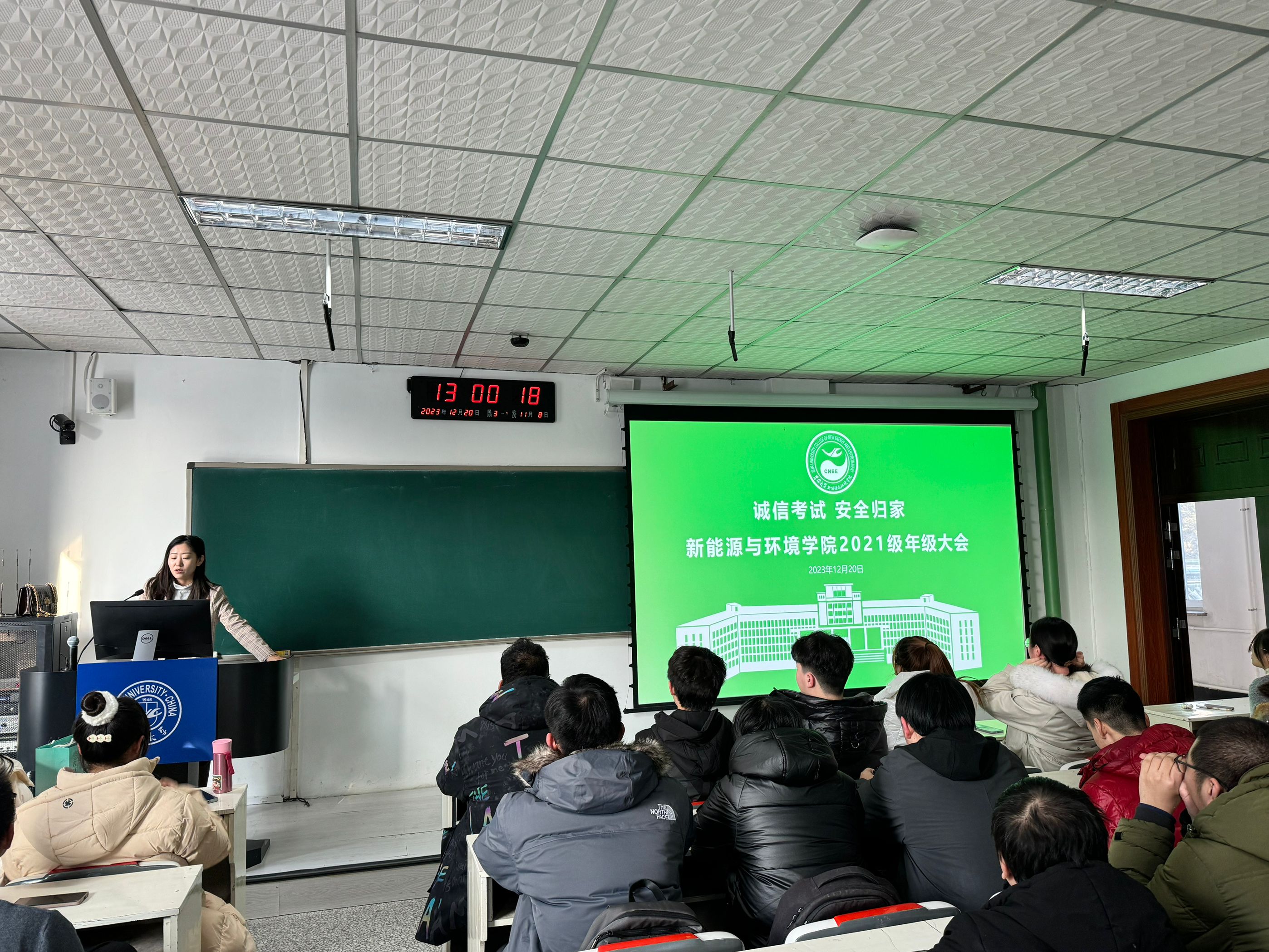 岁月不居,时节如流,这个充实而忙碌的学期也将迎来尾声。在期末周即将来临之际,为了帮助同学们顺利通过期末周的考试,再次强调考试规范与考试纪律,助力同学们度过安全愉快的假期,2023年12月20日,在辅导员李薇老师的主持下,304永利集团2021级年级大会如约召开,会议主题为“诚信考试,安全归家”。