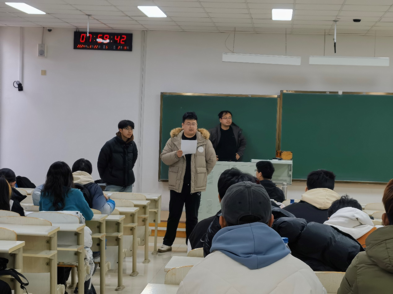 3月22日早上8点,2022级辅导员母茂松老师进入李四光210教室,对刚刚开始的《工程测量学B》课堂进行查课。4个班级的80名同学全员出勤。