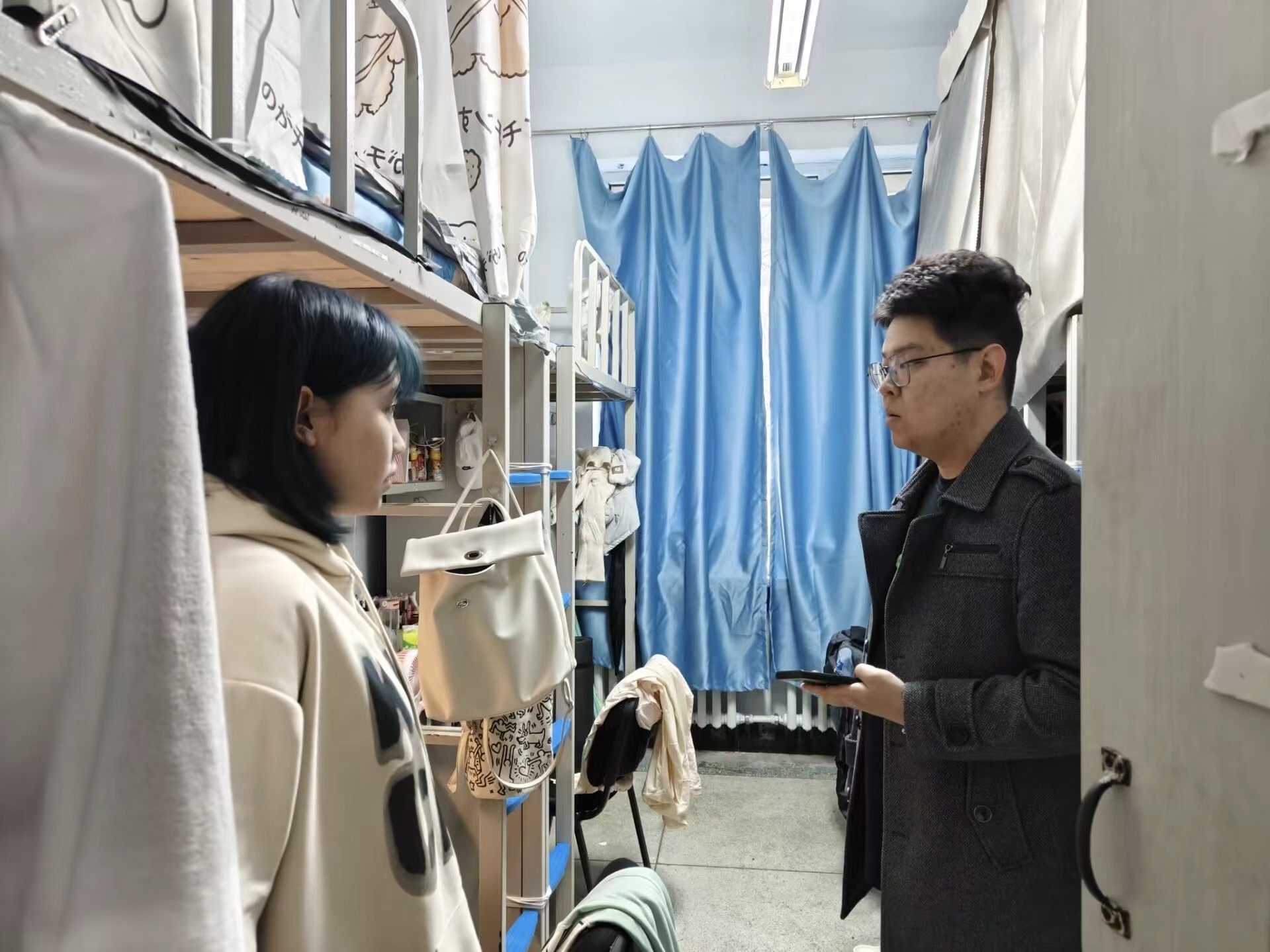 4月15日,2023级辅导员姜岳彤老师进入中心校区南苑二公寓21间寝室,对同学们近期学习状态,转专业员工的适应程度进行了解,并提醒同学们注意寝室卫生。同日,姜老师又深入环境类《分析化学》课堂,同任课教师了解教学进度及员工学习情况,本次课程118人全部按时到课。