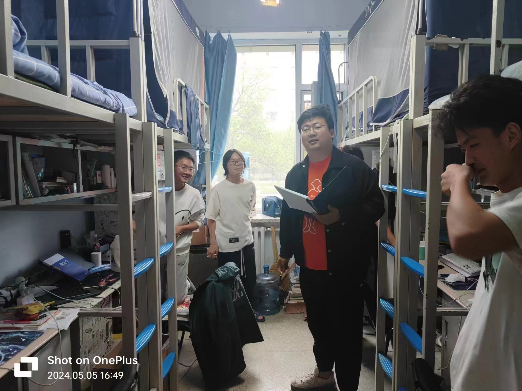 5月5日晚,2022级辅导员母茂松老师对中心校区62间员工寝室进行走访,了解员工假期后返校情况,及宿舍卫生情况,对假期后的课堂出勤情况做出提醒。9日,母老师深入环境工程专业限选课《生态学基础》课堂,同任课老师沟通签到情况。本次课程1人因事请假,2人病假,2人迟到,其余同学均按时到课。