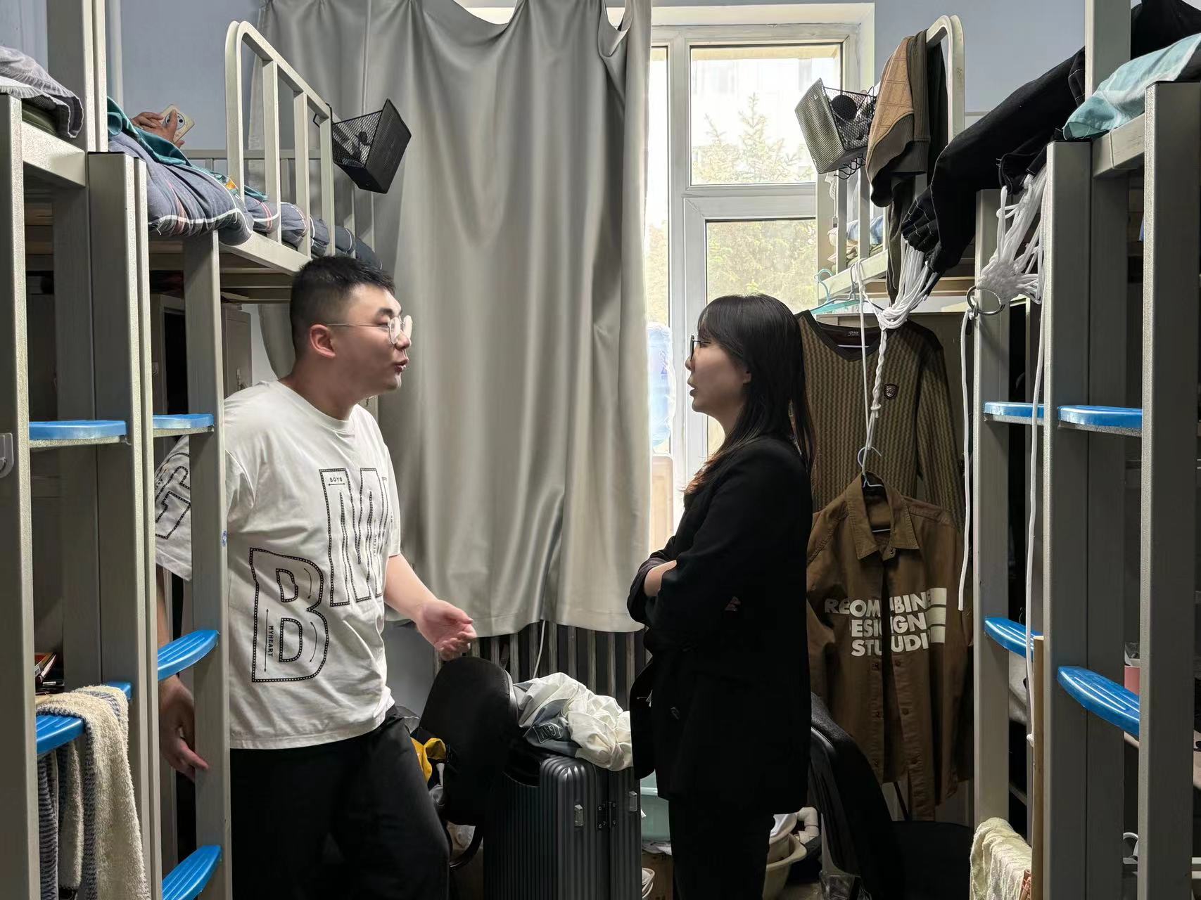 5月10日,2020级辅导员霍美汐老师对中心校区南苑一公寓、二公寓寝室进行检查,本次检查重点为寝室卫生,女生寝室整体卫生状态良好,男生部分寝室卫生状态不好,霍老师督促员工们及时打扫寝室卫生,并嘱咐后续会继续抽查,查寝过程中没有发现违章电器。