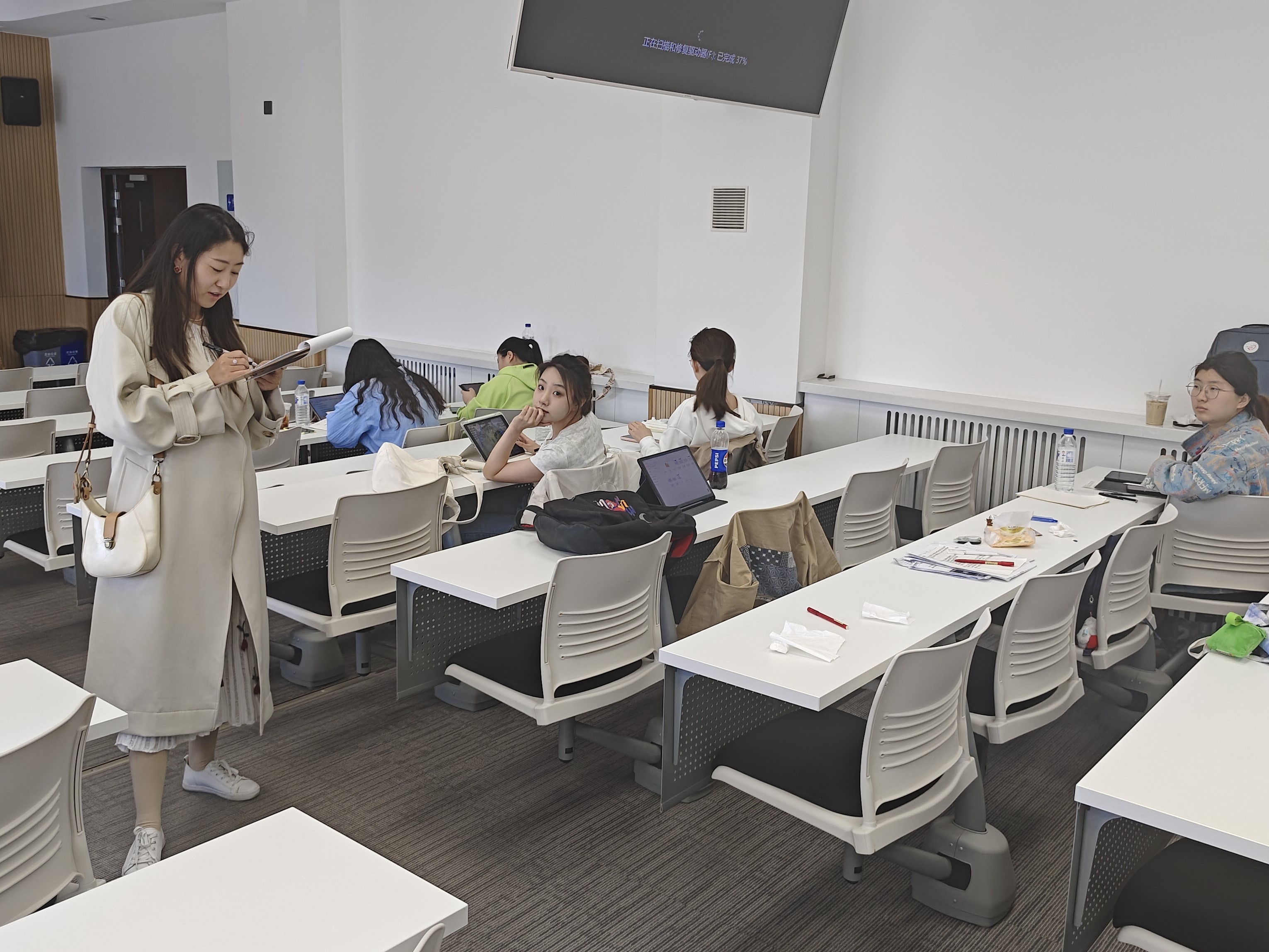 5月19日,2023级辅导员姜岳彤老师深入南苑一公寓寝室,重点了解了宿舍鼠患问题,提醒同学们做好个人卫生,及时开窗通风。当日,姜老师又走进《劳动教育》课堂,向任课教师了解教学安排,同时对到课情况进行检查。本次课程共2人请假,其余同学均按时到课。