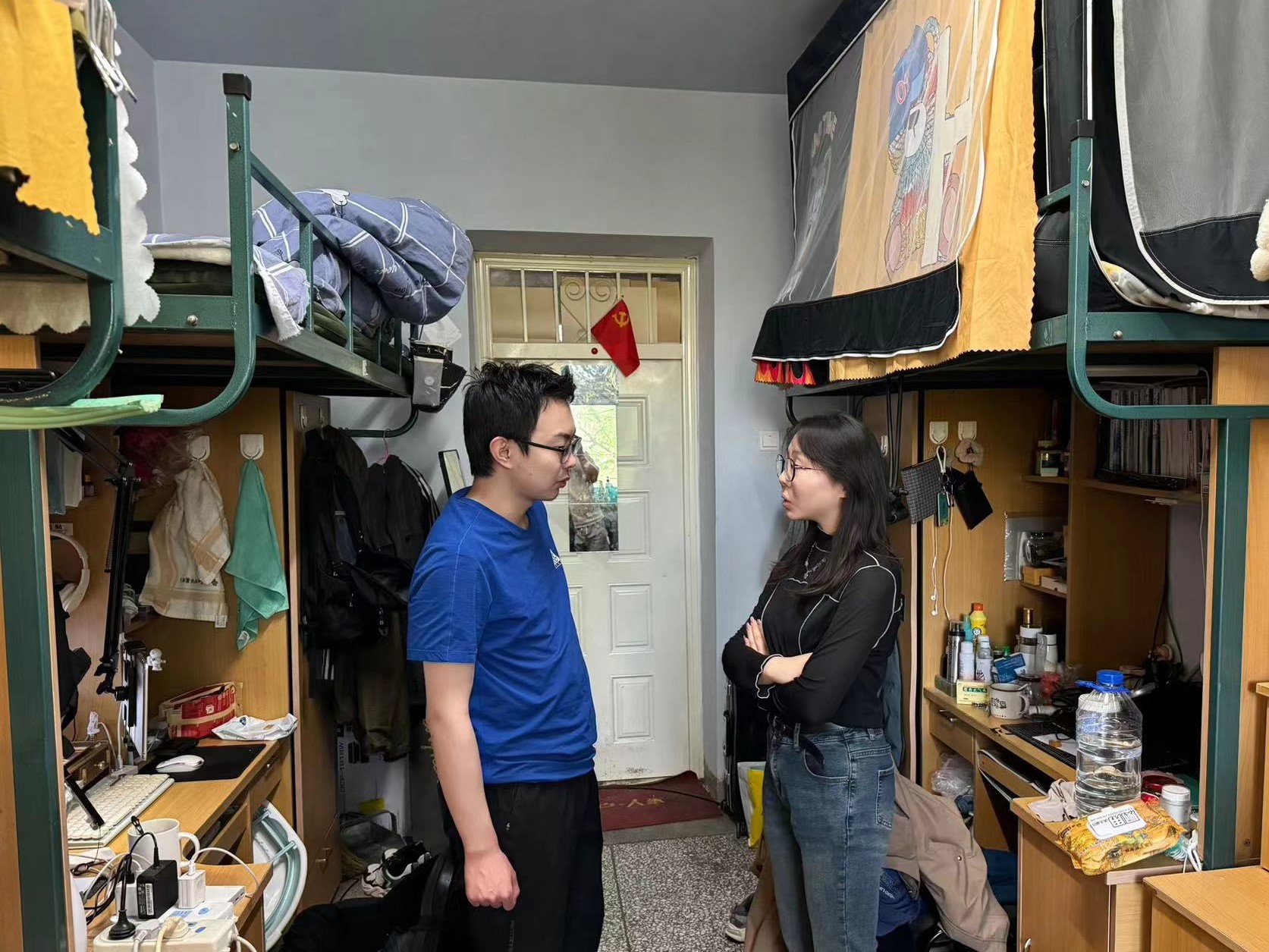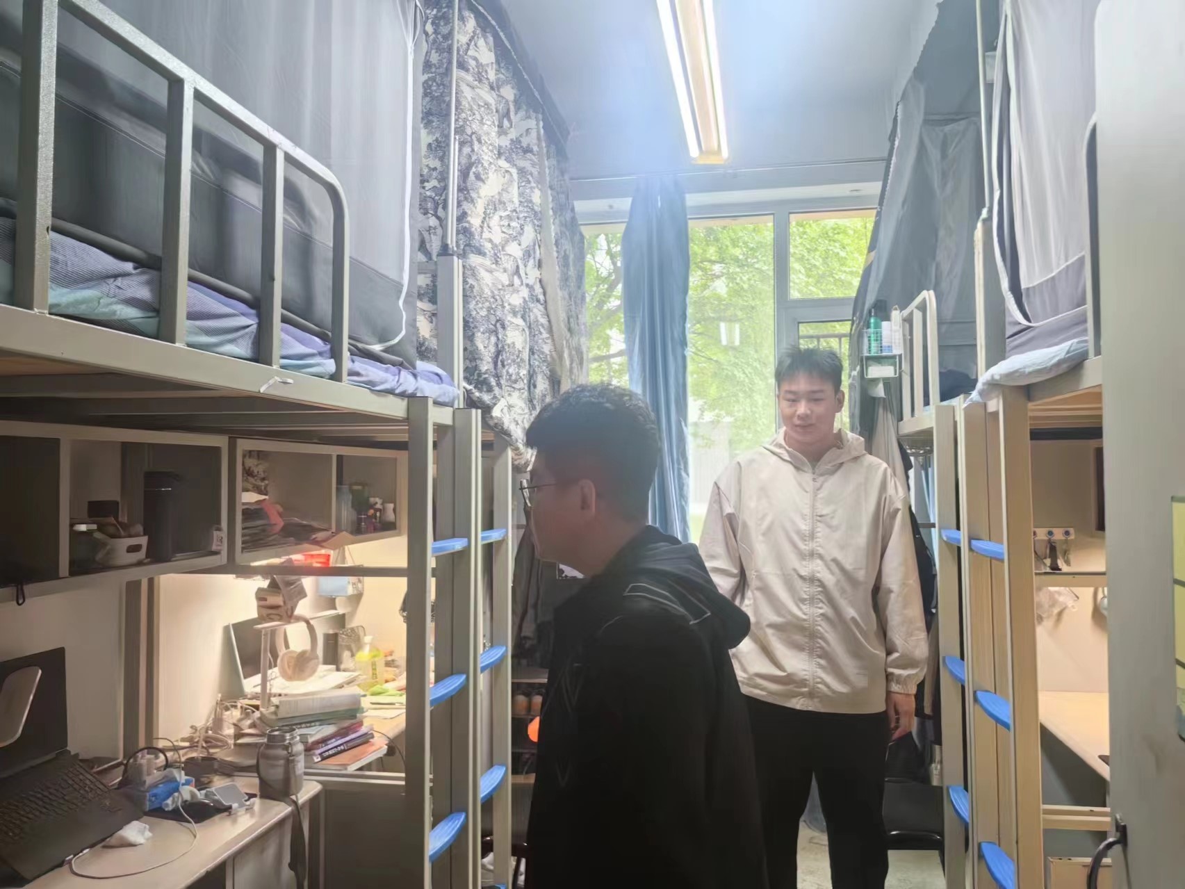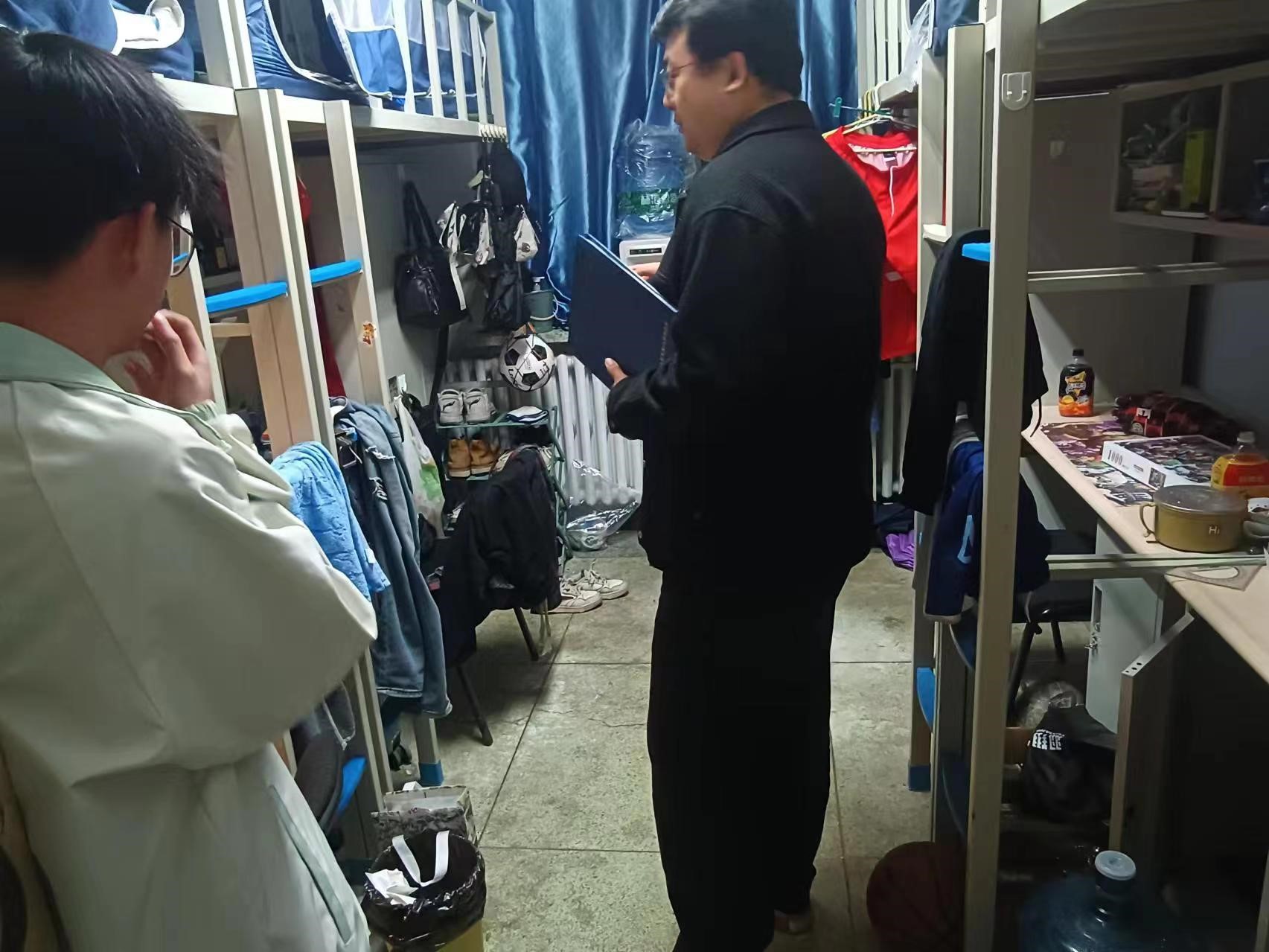 5月15日,2022级辅导员母茂松老师对中心校区员工寝室进行了卫生检查。母老师督促同学们尽快清理垃圾,避免气温回升产生异味,滋生细菌,保持寝室卫生整洁,营造良好生活环境。