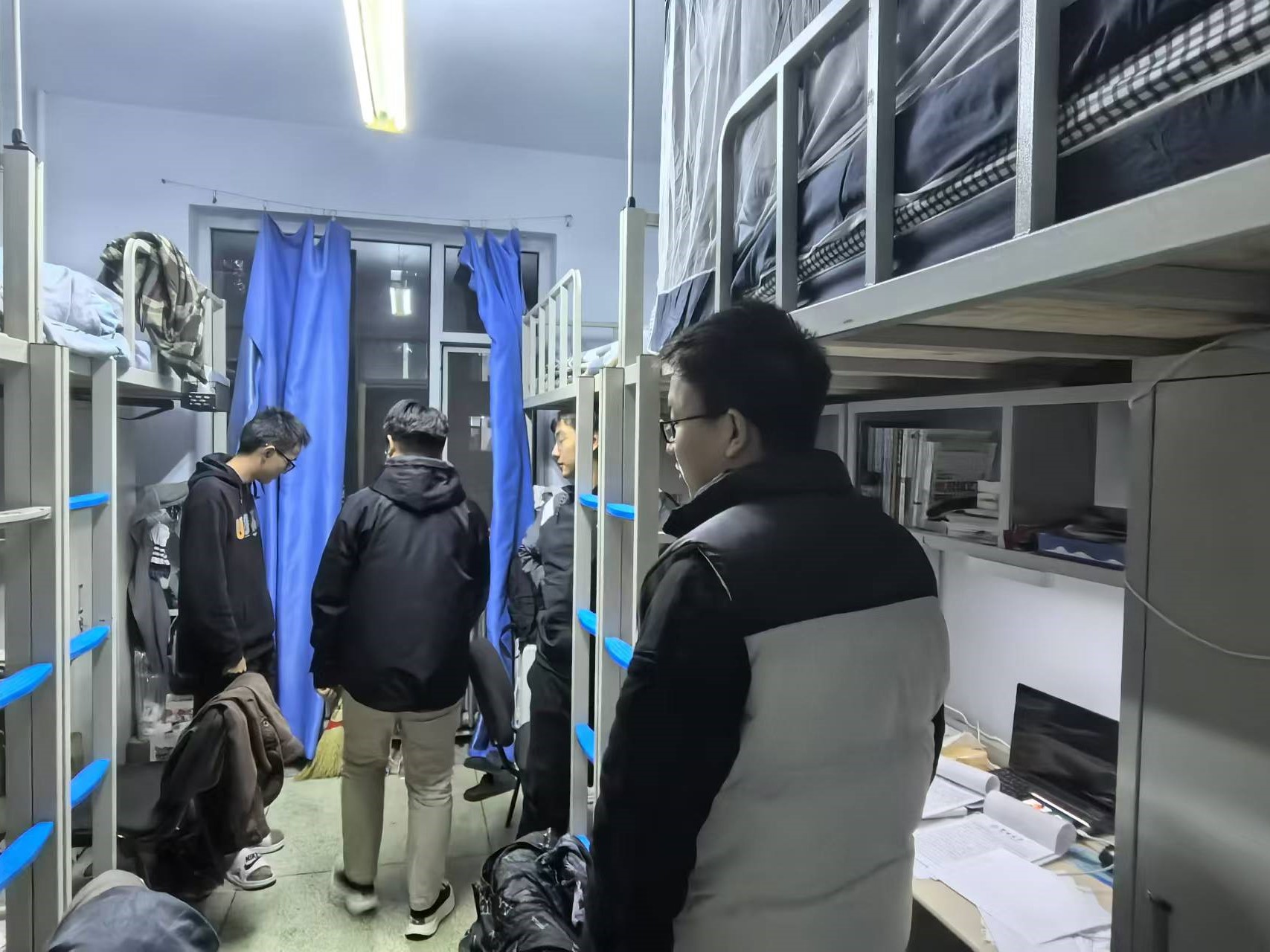 10月31日,2024级新生辅导员助理姜兆轩进入南苑一公寓检查寝室卫生情况和寝室供暖情况,并提醒同学们认真复习,迎接即将到来的期中考试。