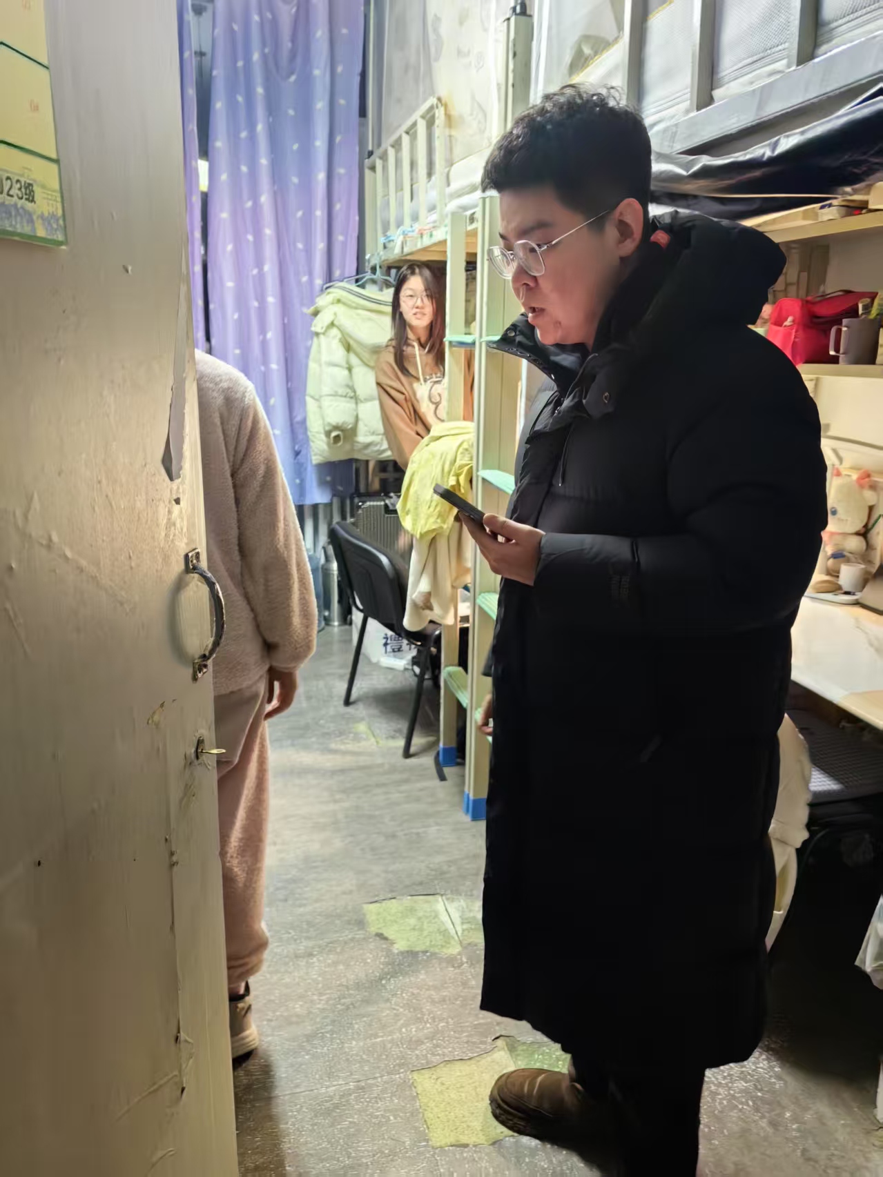 为全面做好春季学期本科生返校工作,加强员工动态管理,保障新学期各项工作有序开展,2月23日,304永利集团员工工作办公室全体辅导员老师前往中心校区、朝阳校区寝室对员工到校情况进行走访,对员工公寓卫生消防安全情况进行检查。