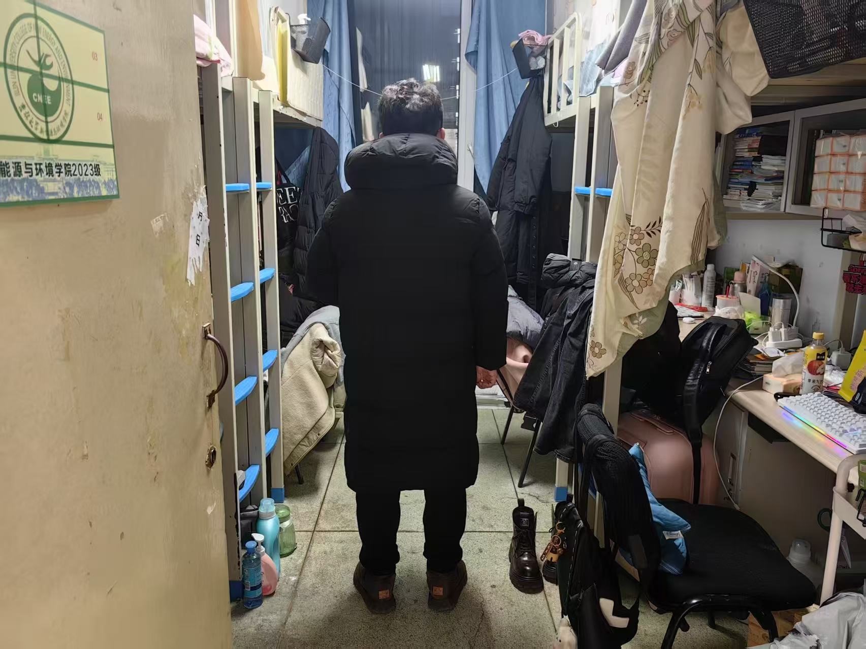 3月6日,2024级新生辅导员助理姜兆轩进入南苑一公寓,检查寝室卫生,提醒同学们新学期要认真上课保证出勤,同时提醒计划转专业员工也不能因备考复习而影响正常课程安排。
