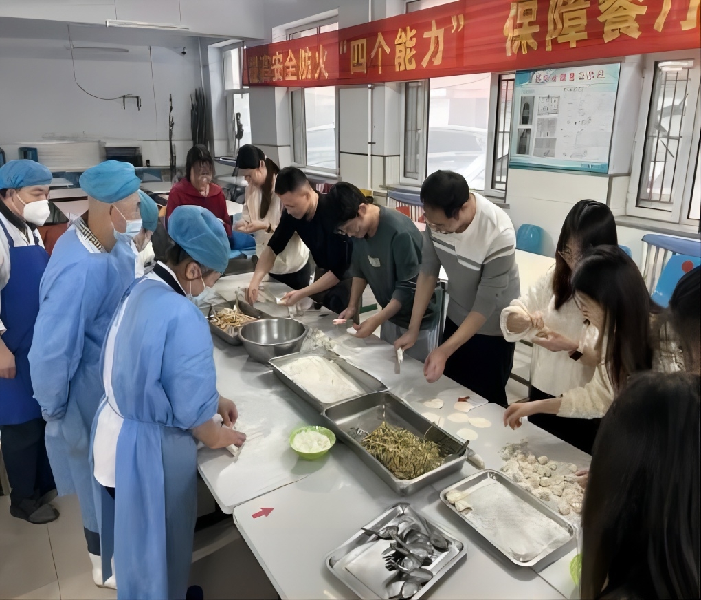 在包饺子活动现场,同学们热情高涨,积极参与。食堂的叔叔阿姨亲手教同学们如何包饺子,现场气氛十分活跃。看着大家亲手包出了一个个形态各异的饺子,真的有家里过年的味道了!