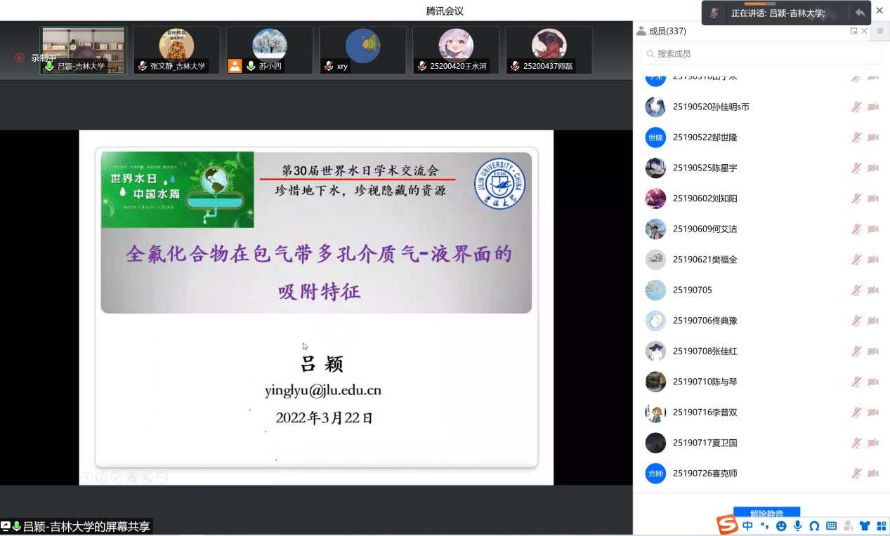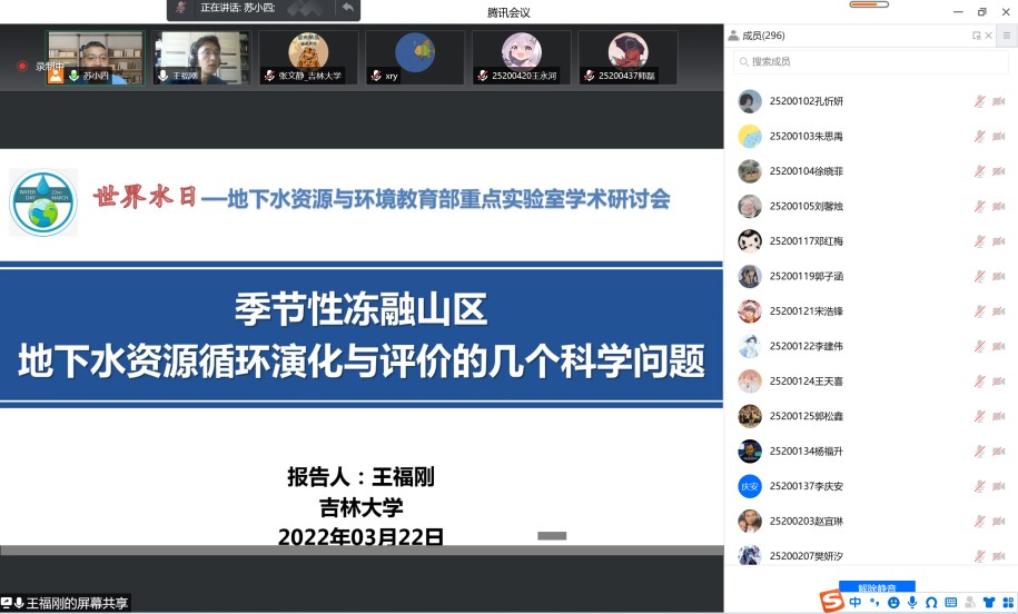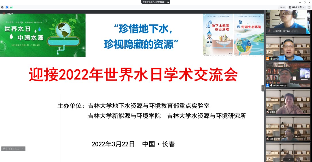 为深入落实习近平总书记“节水优先、空间均衡、系统治理、两手发力”治水思路,共同探讨地下水保护与利用的平衡之道,3月22日下午304永利集团、水资源与环境研究所与地下水资源与环境教育部重点实验室共同组织召开了迎接2022年世界水日学术交流会。会议由水资源与环境研究所所长苏小四教授主持,公司领导、相关教师和研究生、本科生同学350余人在线参加了此次学术交流。