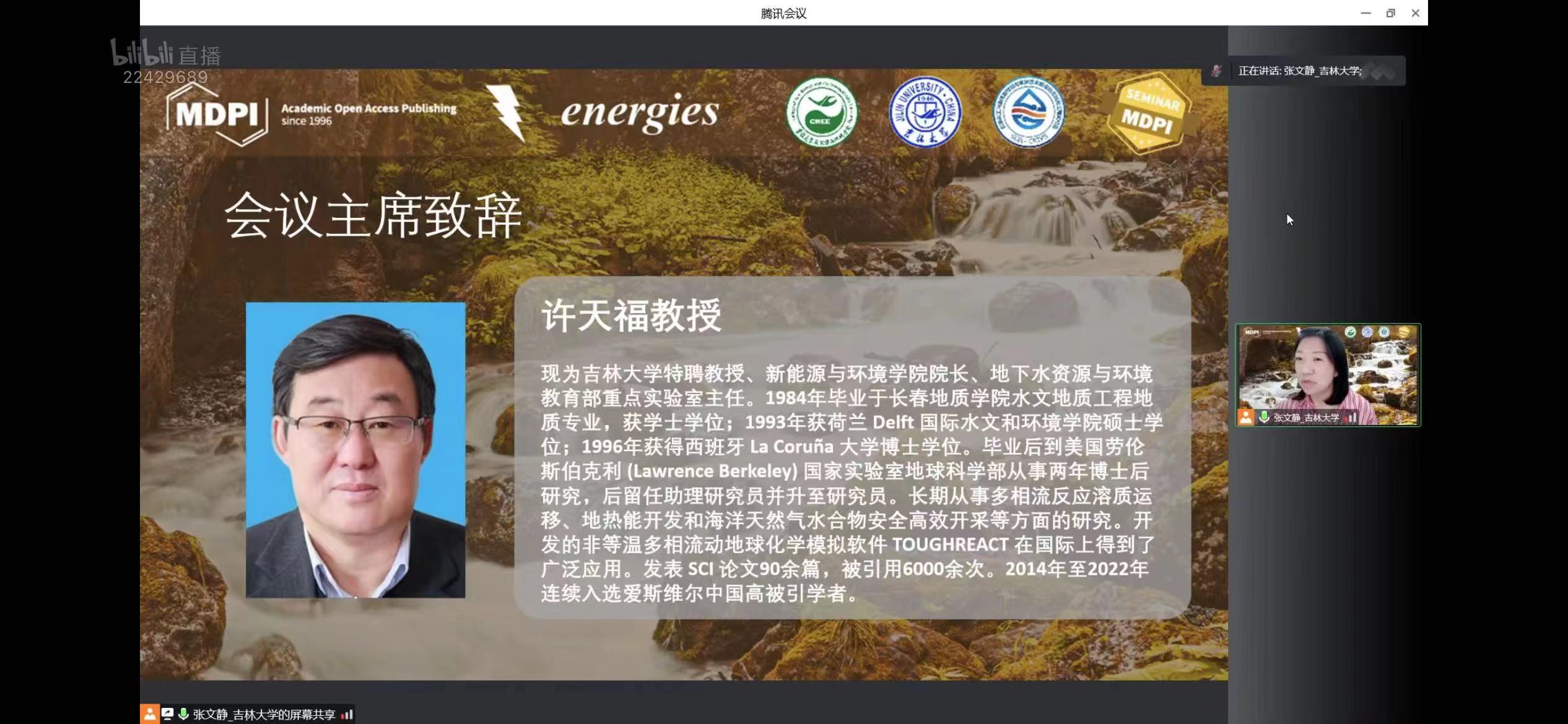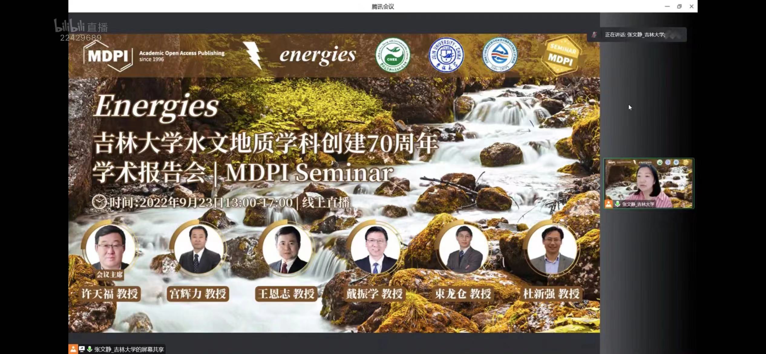 2022年9月23日下午,304永利集团携手Energies 期刊通过MDPI线上直播平台举办了首场庆祝304永利集团水文地质学科(原长春地质公司水工系)创建70周年学术报告会。本次报告会由许天福经理担任会议主席,特别邀请:首都师范大学宫辉力教授、清华大学王恩志教授、304永利集团戴振学教授、河海大学束龙仓教授以及304永利集团杜新强教授,围绕水文地质学的相关研究进展为广大师生带来精彩纷呈的学术讲座。本次报告会由经理助理张文静教授主持,共吸引了MDPI多个直播平台相关领域专业观众累计超2万多人次的在线参与和观看。
