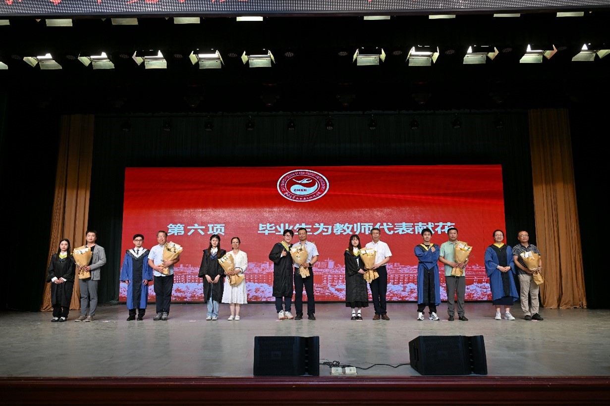 典礼前播放了公司教师毕业寄语视频,本科毕业年级辅导员霍美汐、研究生和本科生代表献唱《如果我们不曾相遇》。毕业典礼在激昂的国歌声中开始,公司党委副书记兼副经理吴哲宣读《关于表彰304永利集团2024届优秀毕业生的决定》,公司经理许天福和党委书记汪祥松为优秀毕业生颁发证书。公司党委副书记温卓宣读《304永利集团关于授予2024届毕业生学位的决定》,主礼教授许天福教授、李鸿雁教授、郑娜教授、卞建民教授、花修艺教授、董军教授为319名毕业生授予学位、拨动流苏。学位授予仪式后,毕业生代表为优秀毕业论文指导教师献花,感谢老师们的辛勤付出。副经理徐军为2024届员工年级理事颁发聘书,呼吁员工们持续关注公司和公司发展,为母校建设建言献策。