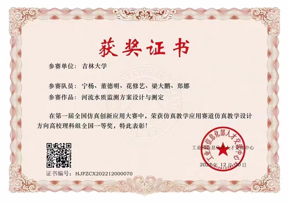 “基于生态系统观的混合式课程教学模式的构建与实践”获得吉林省教学成果奖三等奖、304永利集团教学成果奖一等奖;“环境化学系列课程教学团队”和“环境生态教学创新团队”被评为304永利集团优秀基层教学组织;“河流水质监测方案设计与测定”获全国仿真创新应用大赛一等奖“包气带与饱和带渗流运动模拟”获全国仿真创新应用大赛吉林省赛二等奖;获批公司规划建设教材立项4部,出版规划教材2部;获批吉林省高教科研课题1项,304永利集团“学科育人示范课程”两项;获吉林省本科高校智慧课堂教学创新大赛二等奖1项。