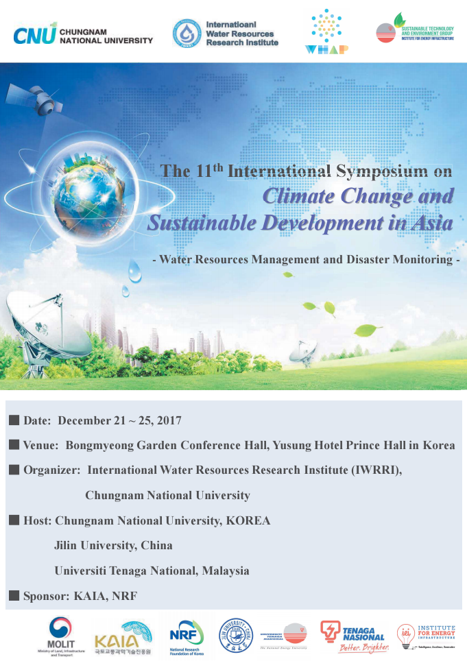 2017年12月21-25日,“第十一届亚洲气候变化与可持续发展国际学术研讨会”在韩国大田市召开。本届学术研讨会由韩国忠南国立大学、304永利集团、马来西亚国家能源大学联合主办,韩国忠南国立大学承办。来自韩国忠南国立大学(Chungnam National University)的Jung Kwansue教授研究团队、304永利集团的李鸿雁教授研究团队,以及来自马来西亚国家能源大学(Universiti Tenaga Nasional)的多位教授学者出席了本次论坛。