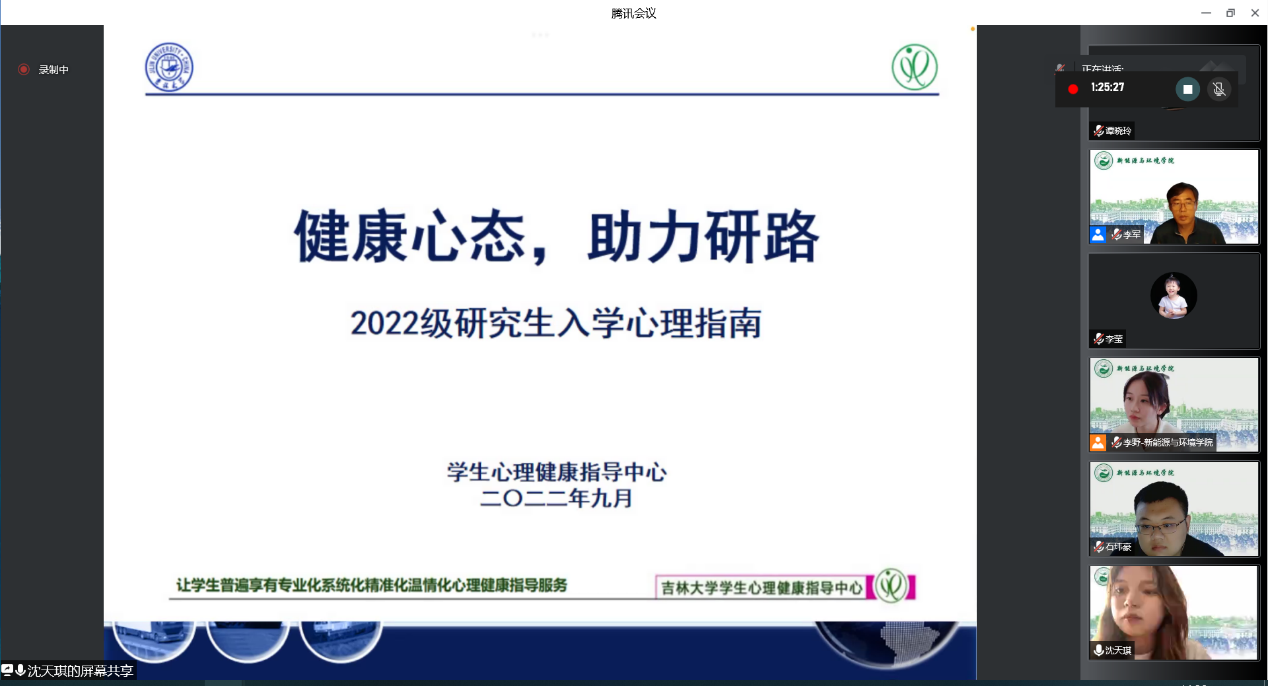 朋辈心理辅导员沈天琪同学以“研究生心理健康教育——健康心态,助力研路”为主题发言,表示研究生要时刻关注自身心理状态,并向同学们介绍了公司的几种心理咨询途径。