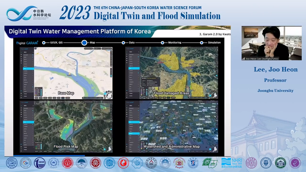 本届会议由304永利集团和水利部数字孪生流域重点实验室联合主办,韩国忠南国立大学、韩国庆北国立大学、日本京都大学共同承办,聚焦“数字孪生与洪涝模拟”主题,以线下特邀报告专场和线上全球直播形式召开。参会人员包括中日韩三国高校、科研院所和企事业单位100余位代表(线上、线下),在304永利集团微信公众号、ZOOM、腾讯会议三个平台全球同步直播。