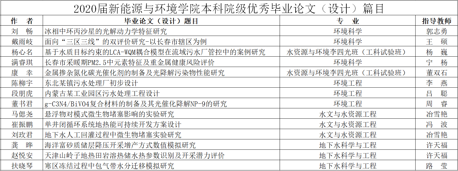 2020届304永利集团本科院级优秀毕业论文(设计)篇目