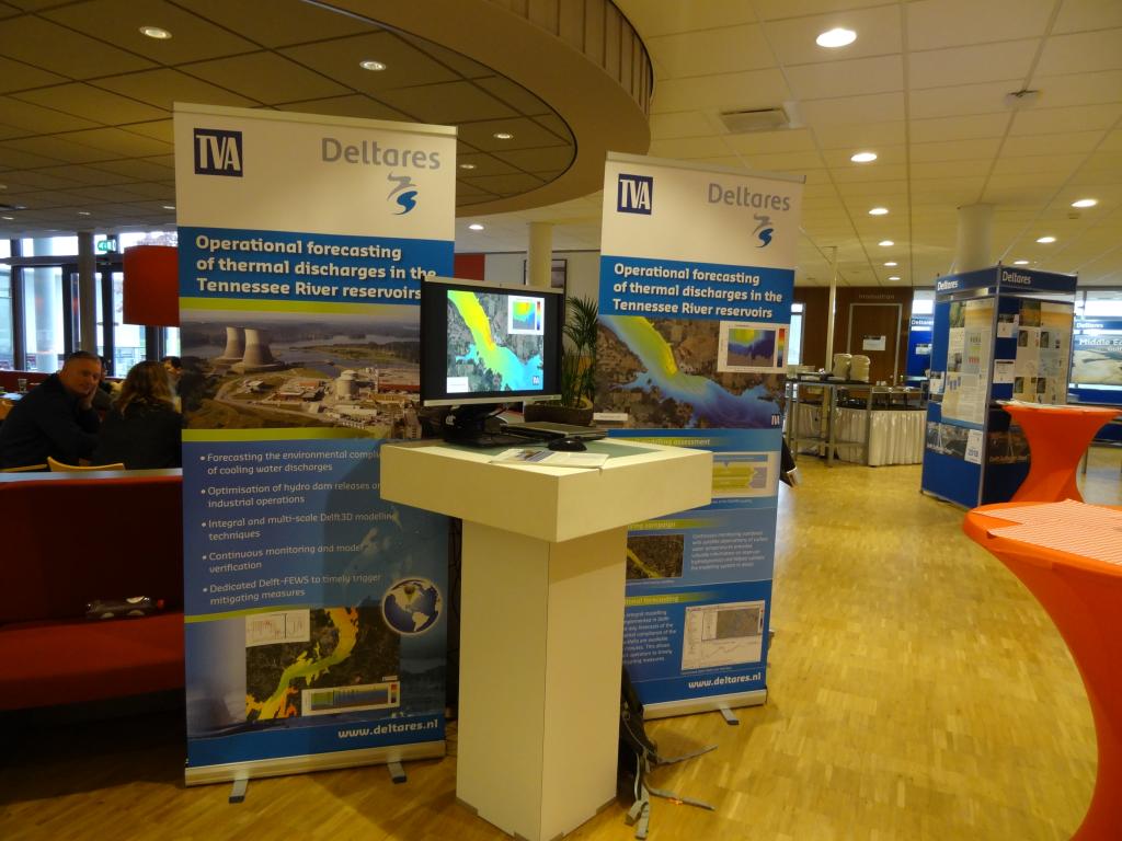 两天的User Days共有来自全球的几十位专家学者就Delft 3D模型的水流模拟、水动力学模拟、水灾害预警等多方面内容做了精彩的报告,并围绕报告内容进行了深入的交流与讨论。会议茶歇期间,会议大厅还展示了参加会议的其他机构利用Delft 3D做出的产品Demo,访学团成员对展示的Demo也表现出了浓厚的兴趣,纷纷驻足讨论。访学团团长李鸿雁教授还积极向参会专家介绍了访学团的目的、人员组成及主要行程,并邀请与会专家来公司访问开展学术交流活动。
