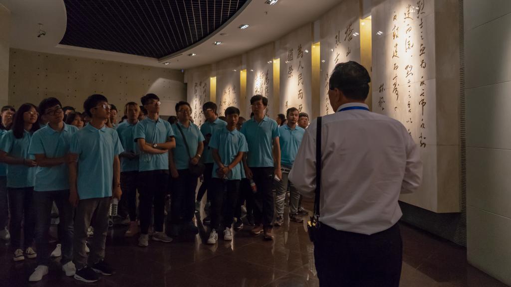辽沈战役纪念馆属于军事历史主题公园,突出体现的是“决战决胜”的主题。在讲解员的带领下,同学们先后参观了战史馆、支前馆、英烈馆和全景画馆。在战史馆中,大家认真聆听着辽沈战役期间中国解放军战士反围的战略选择,感受着领导者的英明决策和解放军战士英勇无畏的精神,也在炮弹和千疮百孔的铁山英雄树中感受那硝烟弥漫的战场的气息。