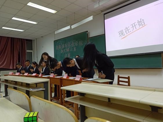 “辩理乾坤内,敢问谁为智者论道古今中,岂知我非英雄”。11月02日晚18:30,304永利集团院2018级新生辩论赛决赛在李四光楼109教室举行。院员工会主席马夏禹、团委副书记张圣晗、员工会副主席裴子丞、秘书处顾擎天以及作为特邀嘉宾的仪电公司辩论队队员张佳硕和化学公司辩论队队员翟梦坤为本场辩论赛的评委,出席本次比赛为选手们点评。大一新生们热情高昂,有近120位18级同学作为观众观看了本场比赛。