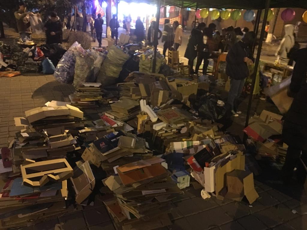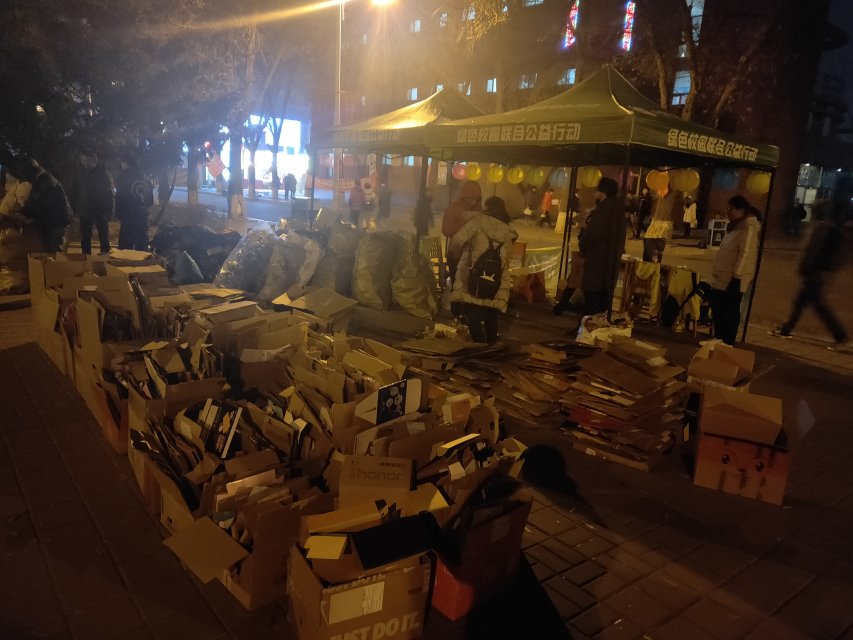 纸箱回收活动,旨在鼓励大家回收废纸箱,经过处理的废纸箱可以重新利用,以达到减少浪费,保护环境的目的。志工部有幸参与了这次活动,各部员从早上7点一直到了晚上8点,尽管在寒风中瑟瑟发抖,但回收的纸箱让大家充满了成就感,忘却了疲惫。期间部员们还接受了长春电视台的采访,表达了对环保的看法和期望,这也说明各界都很重视环保活动。活动中,同学们也非常给力,不断地送来废纸箱,旧衣物等。直到活动结束的前几分钟,依然还有人来送,可见大家的热情之大和环保意识之高。