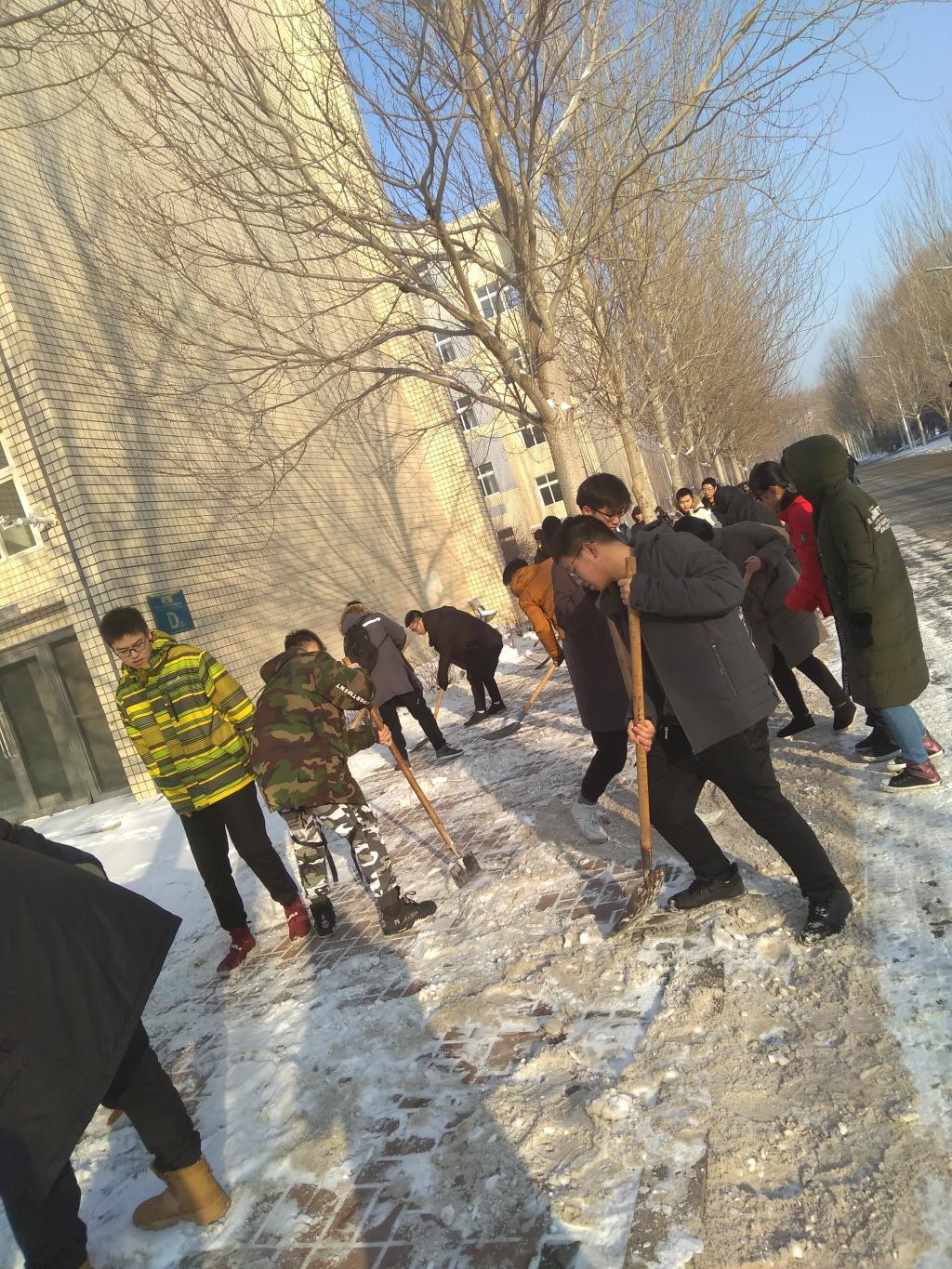 同往年相比,今冬的雪显得有些姗姗来迟了。一场大雪打乱了同学们原来的生活节奏,在雪花装点了美丽的校园的同时,路上的积雪布满了校园。虽然大雪净化了空气、美化了环境,但也给公司师生的出行带来了不便。为了确保师生人身安全,确保校园内道路及校门口道路畅通、校舍安全,维持正常的教学秩序,公司领导决定开启2018年度的校园扫雪工作。12月22日上午九点,凛冽的寒风和美好的周末时光没有阻挡住同学们热情的脚步。公司团学组织的员工干部和志愿者们带好工具在经信教学楼东侧准时集合。随后负责人给大家分配好任务,大家正式开始扫雪。即便迎着凛冽寒冷的北风,大家都发扬了不怕脏不怕累的精神,有秩序而认真地铲雪、扫雪,十分积极主动并且保质保量地迅速完成了所有任务,毫不闲散,活动现场充满一片劳动中的愉快欢欣。在大家共同努力下,迅速完成了扫雪工作。清理过的人行道上干净整洁,想到行人不必再担心雪地路滑的问题,同学们都露出了欣慰的笑容。
