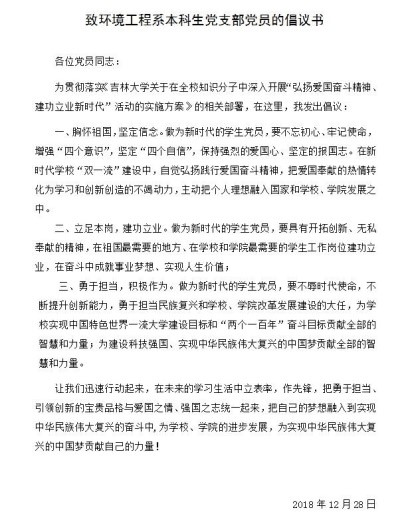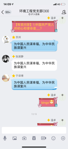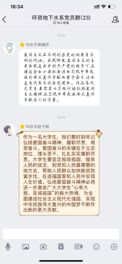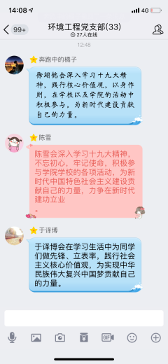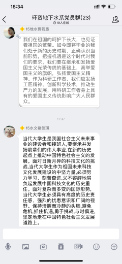 环境工程系本科生党支部和地下水科学与工程系本科生党支部开展了线上党日活动,环境科学系本科生党支部在李四光楼313教室开展了党日活动。各本科生党支部均发出了“弘扬爱国奋斗精神,建功立业新时代”主题倡议书,员工党员认真领会,积极表态,誓言从我做起,以党员标准严格要求自己,在学习生活中发挥先锋模范作用,为实现中国梦、为公司、公司发展贡献力量。随后,各党支部分别进行了线上及线下的理论知识问答,员工党员在问答环节积极互动,部分员工体现了扎实的理论水平,一些员工表示将继续深入学习十九大精神,提升理论知识水平和党性修养。
