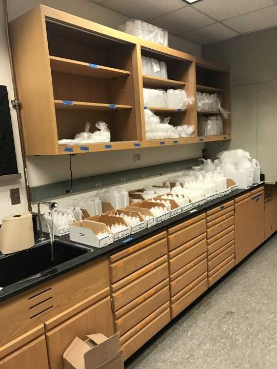 在到达莱斯大学后,访学团就在吕聪老师的带领下参观了环境工程实验室、物理化学实验室、电化学实验室、微生物实验室以及chemical store,其中的chemical store令人眼前一亮,员工可以到这里来购买所需药品试剂,整齐的药品摆放、方便的的购买方式使其成为莱斯大学实验室中独特的风景。