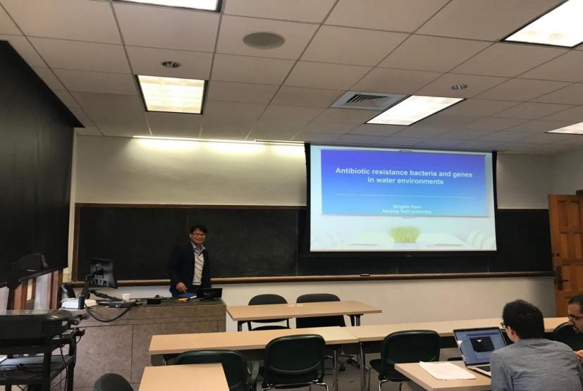 第三次讲座组会的汇报人是袁青彬老师,他汇报的课题是水环境中的抗生素抗性细菌和基因,抗生素的环境污染与生态毒性近年来引起了日益广泛的关注.由于抗生素的滥用首先诱导动物体内产生抗生素抗性基因,从而加速了抗性基因在环境中细菌间的传播扩散,目前,抗生素抗性基因作为一类新型环境污染物,在不同环境介质中的传播、扩散可能比抗生素本身的环境危害更大,因此从水环境中去除抗生素抗性细菌和抗生素抗性基因对于阻止抗生素抗性进入环境具有重要意义。