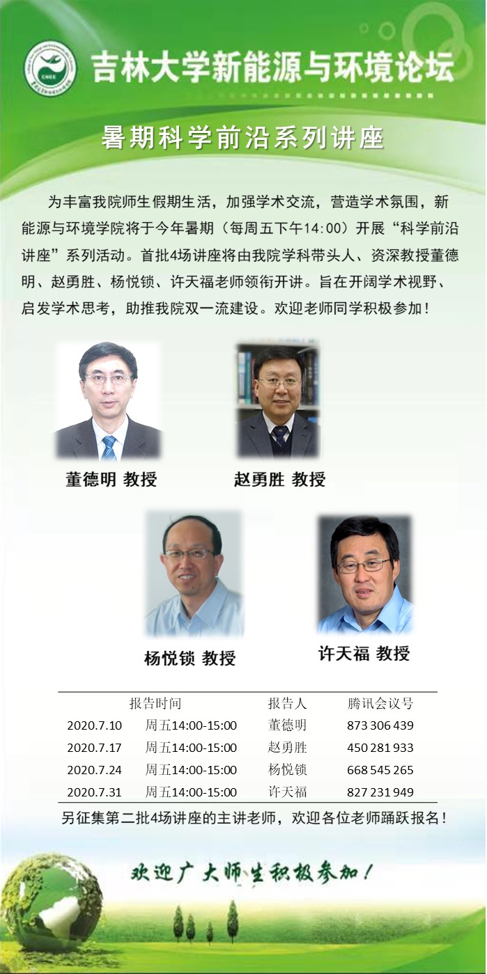304永利集团新能源与环境论坛——暑期科学前沿系列讲座