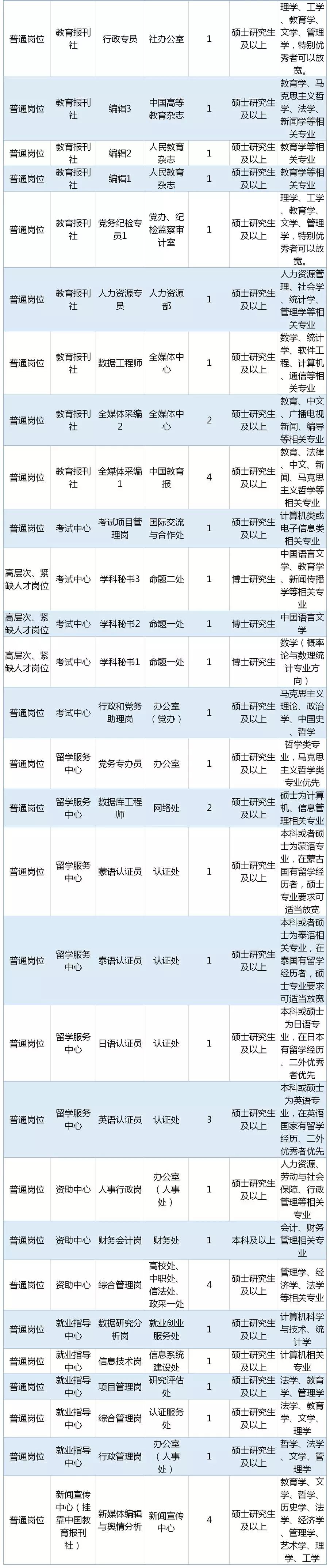 教育部直属事业单位2020年度公开招聘公告(应届生)
