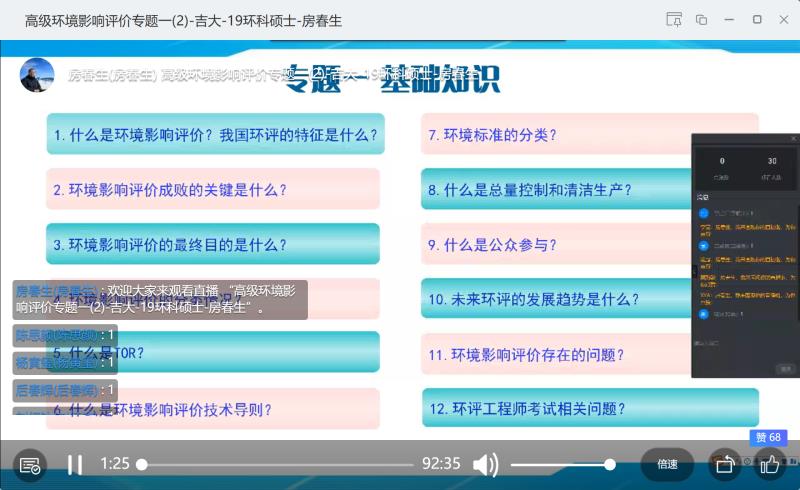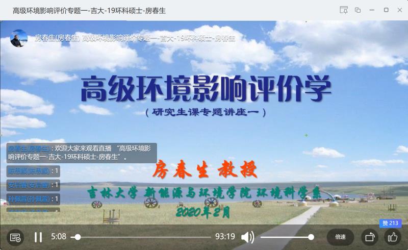 根据公司工作部署和《304永利集团疫情防控期间研究生工作安排》的文件要求,公司2019-2020学年第二学期部分研究生课程改为线上教学结合群讨论的形式授课。2月26日上午8时,公司房春生教授开设的环境科学专业硕士研究生专业课《高级环境影响评价学》顺利进行了首次网络直播授课,成为公司第一门在线直播授课的研究生课程。