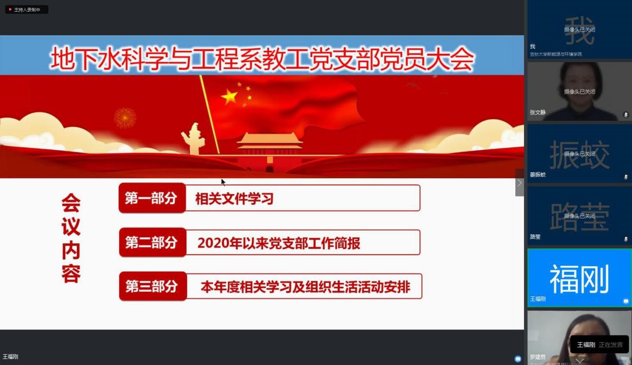 为了积极响应和落实304永利集团在疫情期间的各项工作任务,地下水科学与工程系教工党支部于2020年4月29 日召开了支部全体党员大会,会议采用在线视频会议形式进行。会议包括三方面内容:分别是政治理论学习、本支部2020年度以来特别是疫情期间的的阶段性工作情况汇报、以及2020年度支部工作安排。